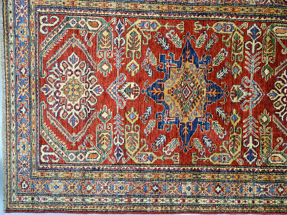 Dimensions : 144 x 88 cm -laine- Pays Afghanistan - Épaisseur : 8 mm - Densité de nouage : 300.000 Nœuds au m² - Surface : 1.27 m² - Poids : 3.8 Kgs - Age : contemporain - Confection : Noué main - Forme : Tapis de chambre - Type : Tapis Oriental