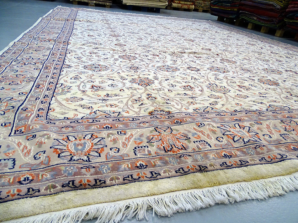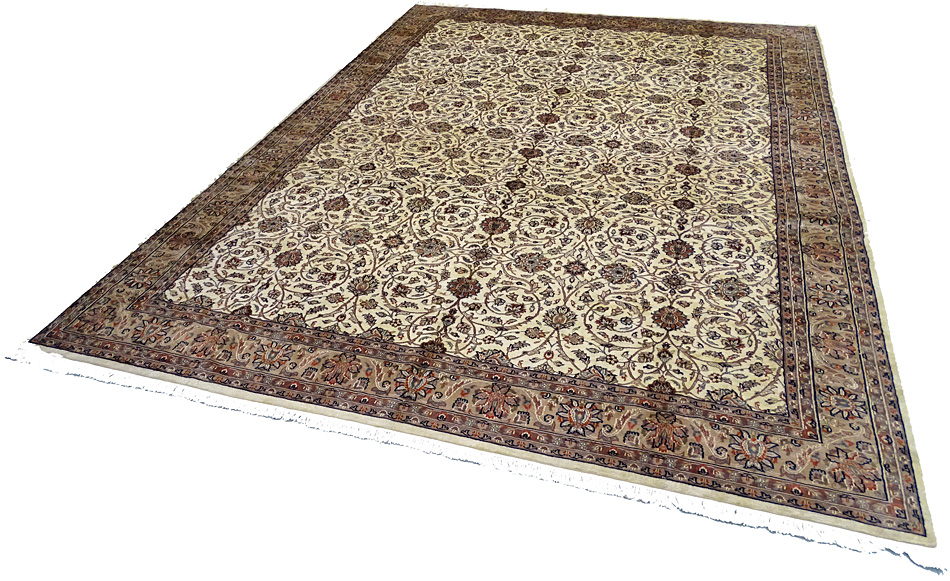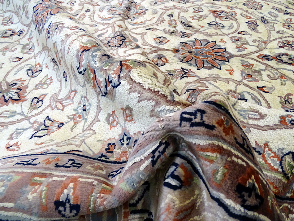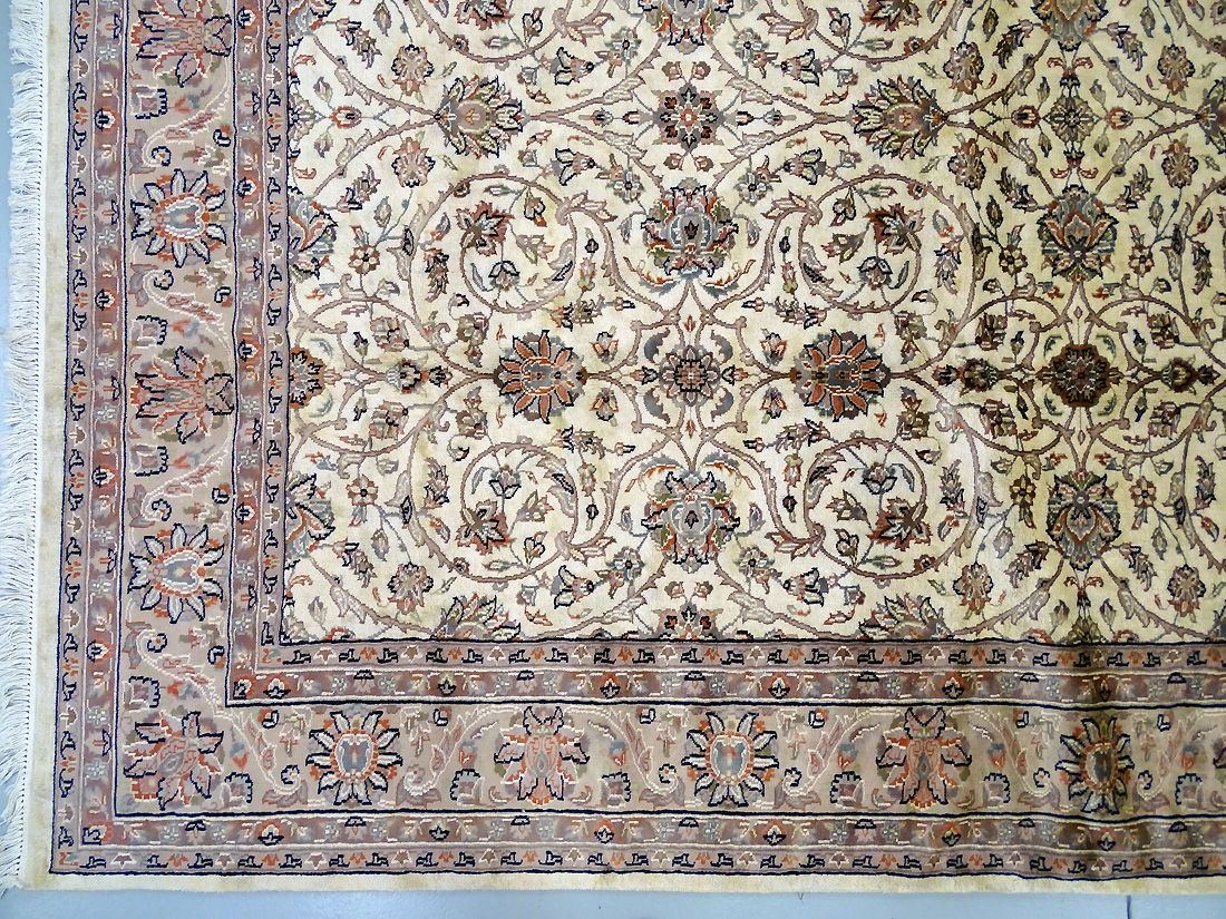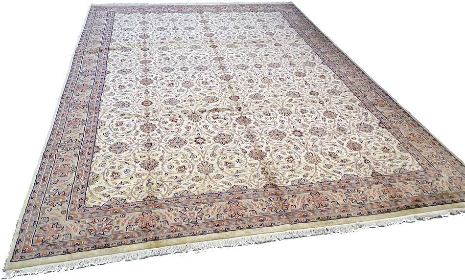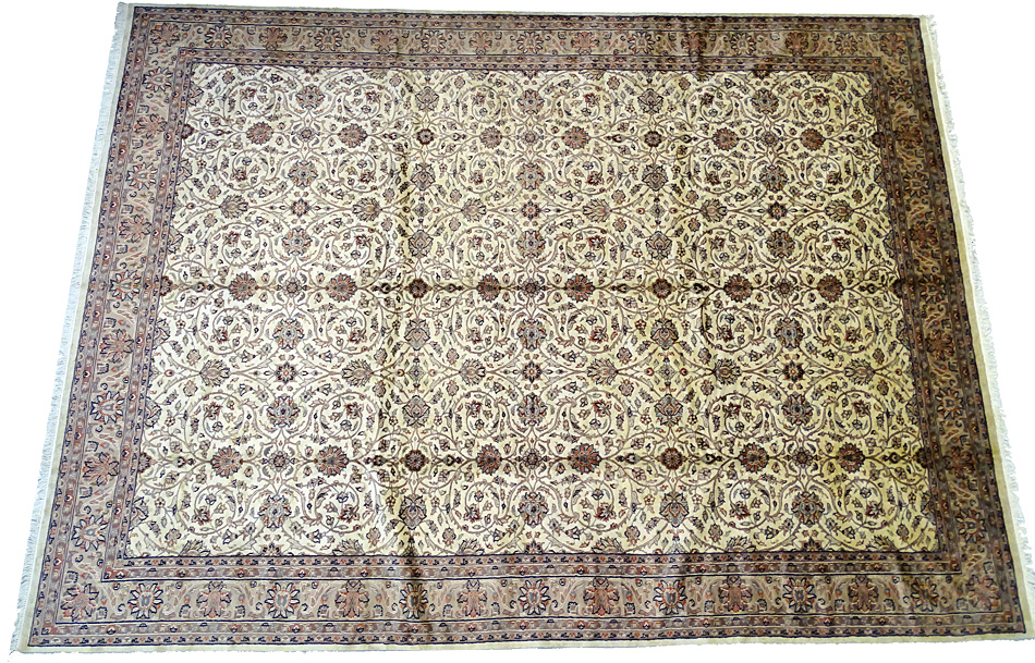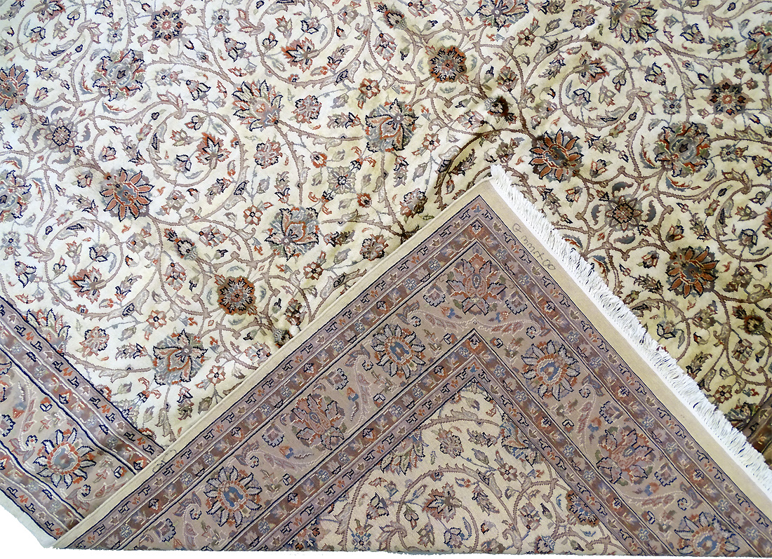 Dimensions : 442 x 308 cm -laine et soie- Pays Pakistan - Épaisseur : 7 mm - Densité de nouage : 200.000 Nœuds au m² - Surface : 13.61 m² - Poids : 34.03 Kgs - Age : contemporain - Confection : Noué main - Forme : Tapis de salon - Type : Tapis Oriental