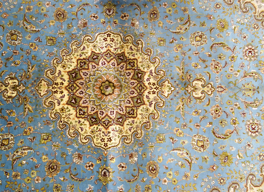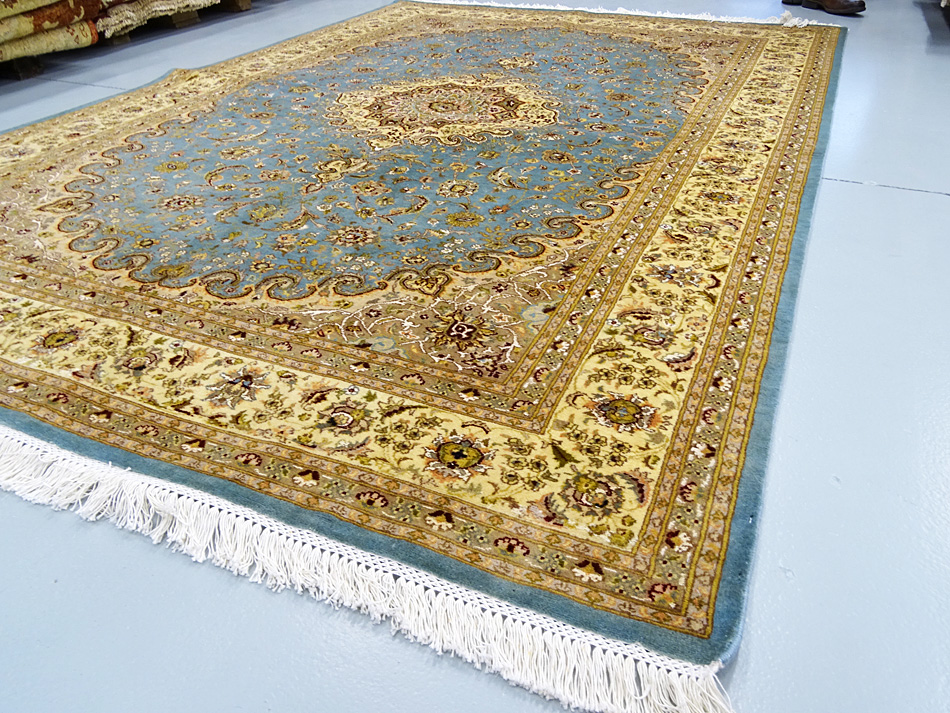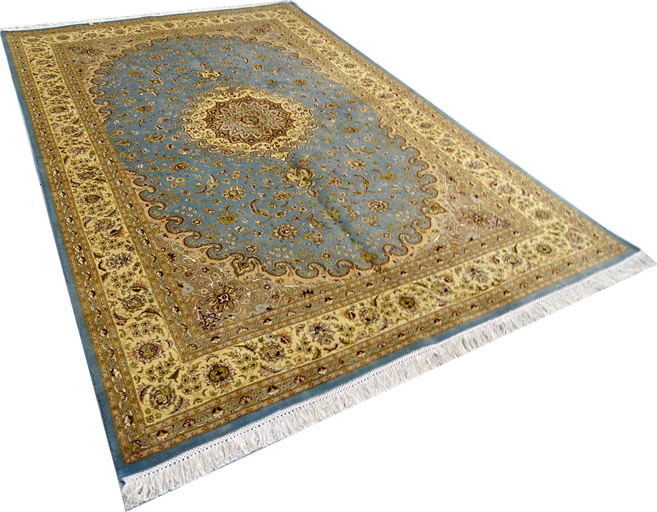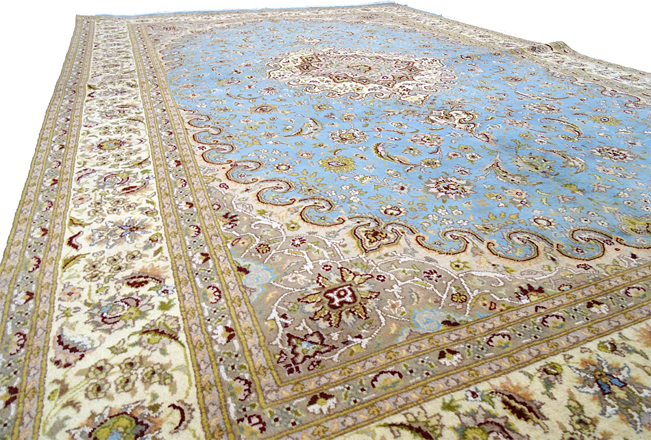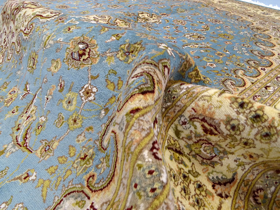 Dimensions : 283 x 183 cm -laine- Pays Inde - Épaisseur : 10 mm - Densité de nouage : 500.000 Nœuds au m² - Surface : 5.18 m² - Poids : 15.54 Kgs - Age : contemporain - Confection : Noué main - Forme : Tapis de salon - Type : Tapis Oriental