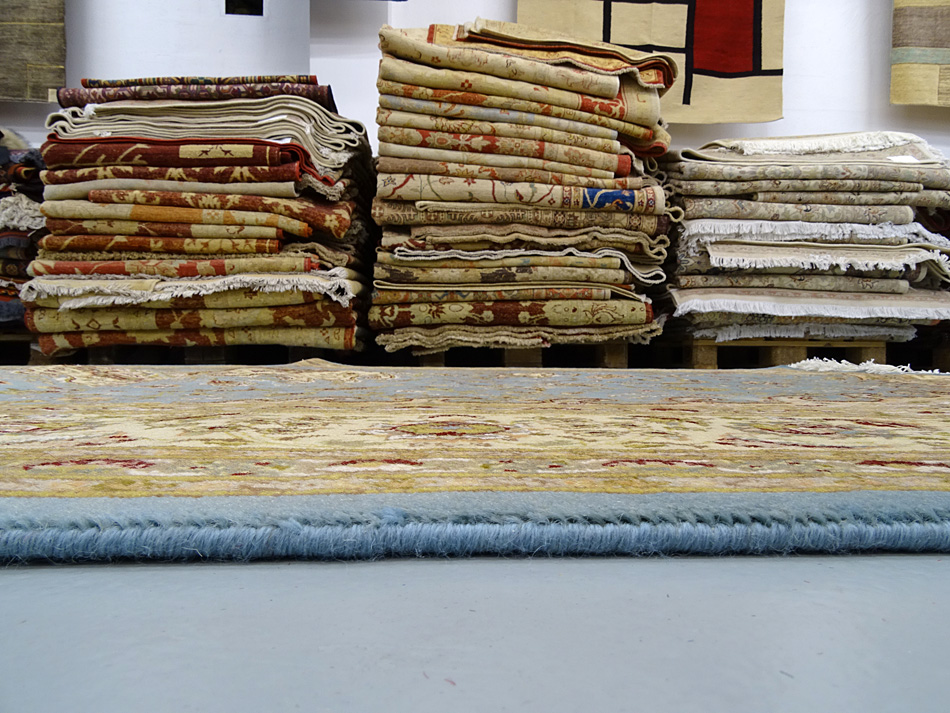 Dimensions : 275 x 185 cm -laine- Pays Inde - Épaisseur : 10 mm - Densité de nouage : 500.000 Nœuds au m² - Surface : 5.09 m² - Poids : 15.26 Kgs - Age : contemporain - Confection : Noué main - Forme : Tapis de salon - Type : Tapis Oriental