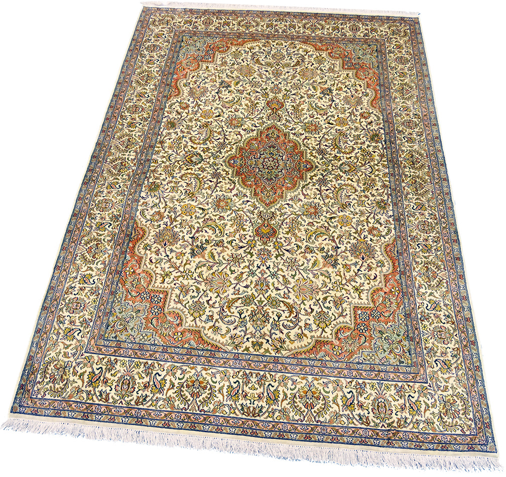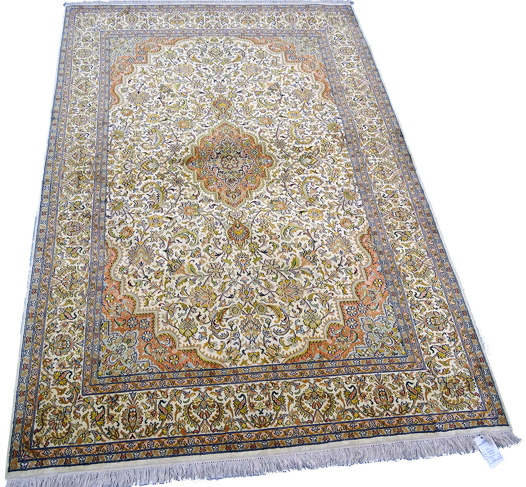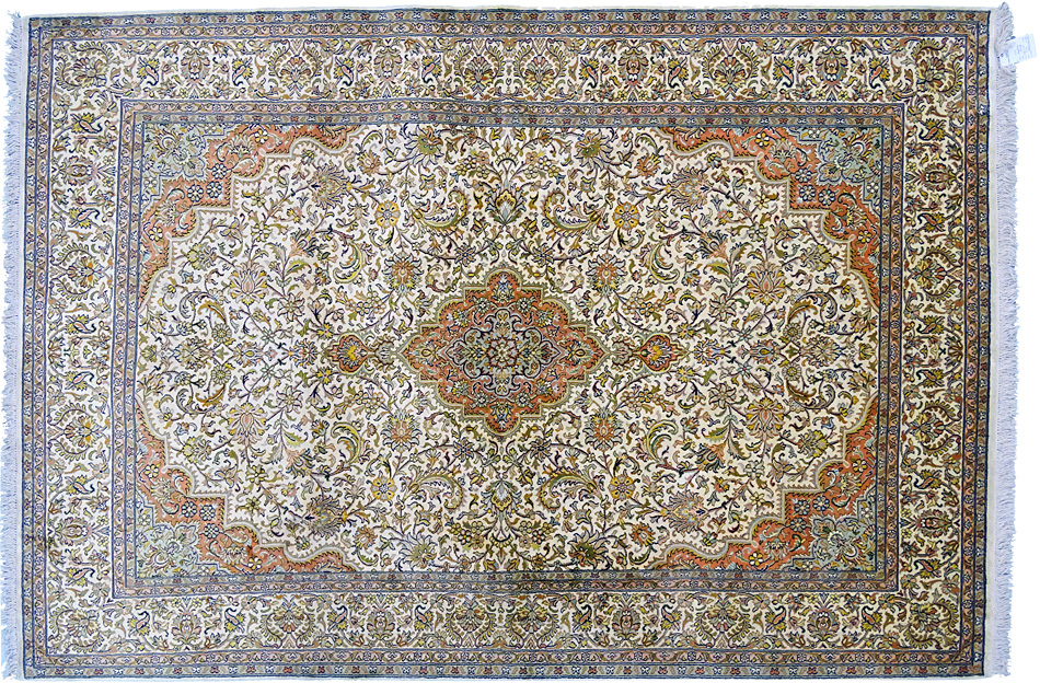 Dimensions : 217 x 152 cm -soie- Pays Inde - Épaisseur : 6 mm - Densité de nouage : 500.000 Nœuds au m² - Surface : 3.3 m² - Poids : 6.6 Kgs - Age : contemporain - Confection : Noué main - Forme : Tapis de chambre - Type : Tapis Oriental