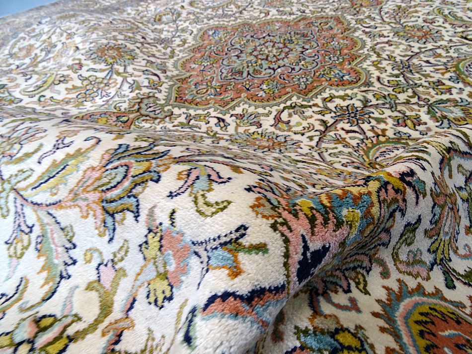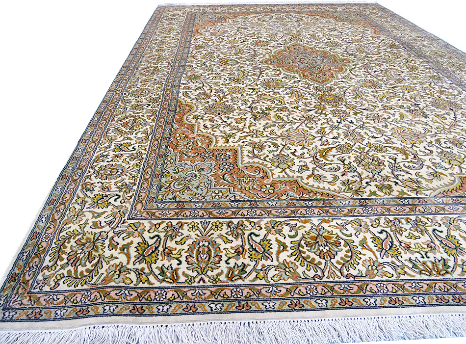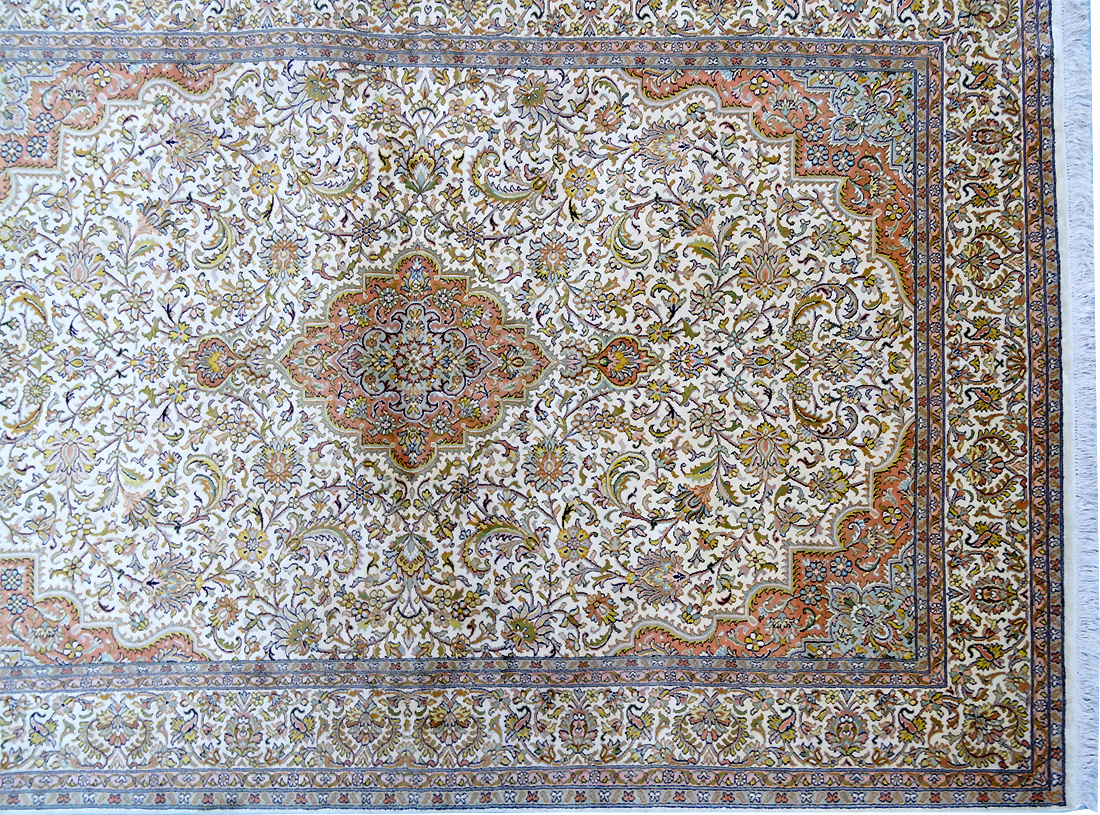 Dimensions : 217 x 157 cm -soie- Pays Inde - Épaisseur : 6 mm - Densité de nouage : 500.000 Nœuds au m² - Surface : 3.41 m² - Poids : 6.81 Kgs - Age : contemporain - Confection : Noué main - Forme : Tapis de chambre - Type : Tapis Oriental