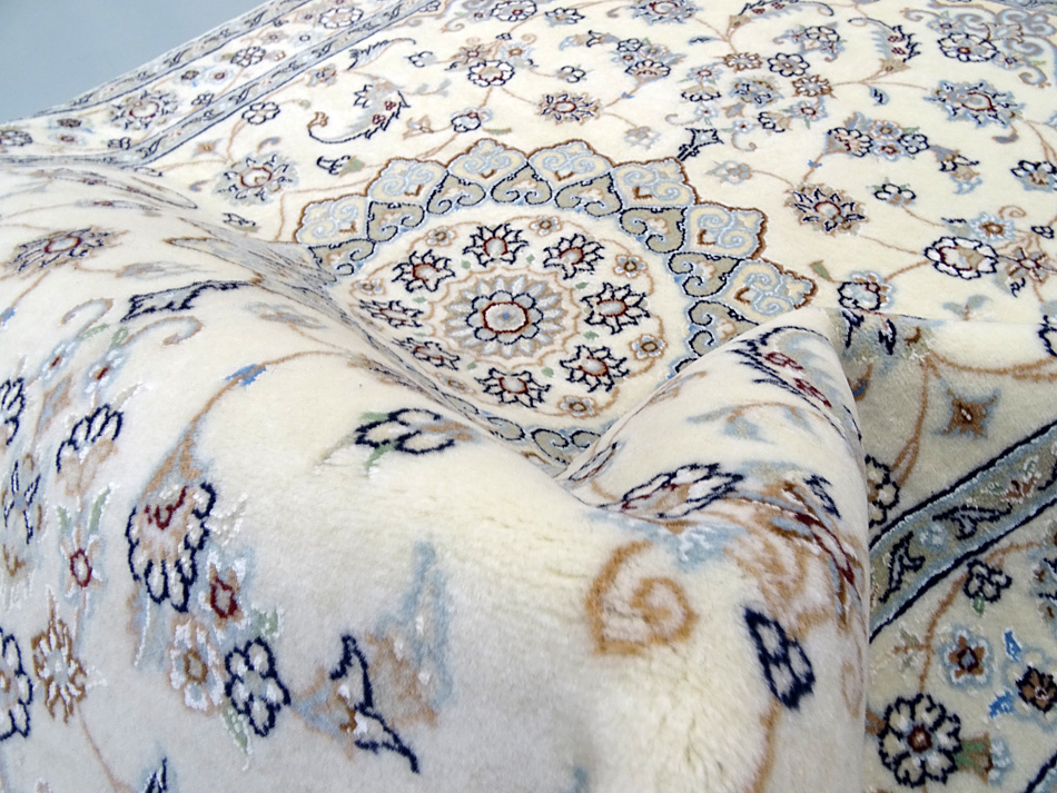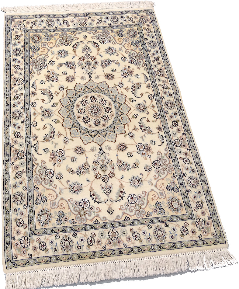 Dimensions : 153 x 109 cm -laine et soie- Pays Iran - Épaisseur : 9 mm - Densité de nouage : 360.000 Nœuds au m² - Surface : 1.67 m² - Poids : 4.17 Kgs - Age : contemporain - Confection : Noué main - Forme : Tapis de chambre - Type : Tapis persan