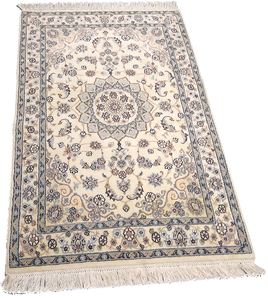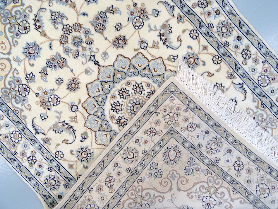 Dimensions : 140 x 89 cm -laine et soie- Pays Iran - Épaisseur : 9 mm - Densité de nouage : 360.000 Nœuds au m² - Surface : 1.25 m² - Poids : 3.12 Kgs - Age : contemporain - Confection : Noué main - Forme : Tapis de chambre - Type : Tapis persan