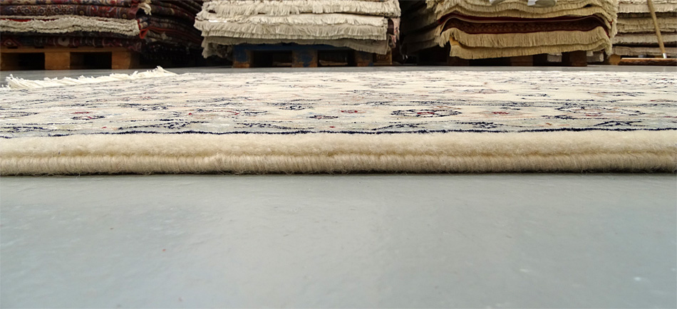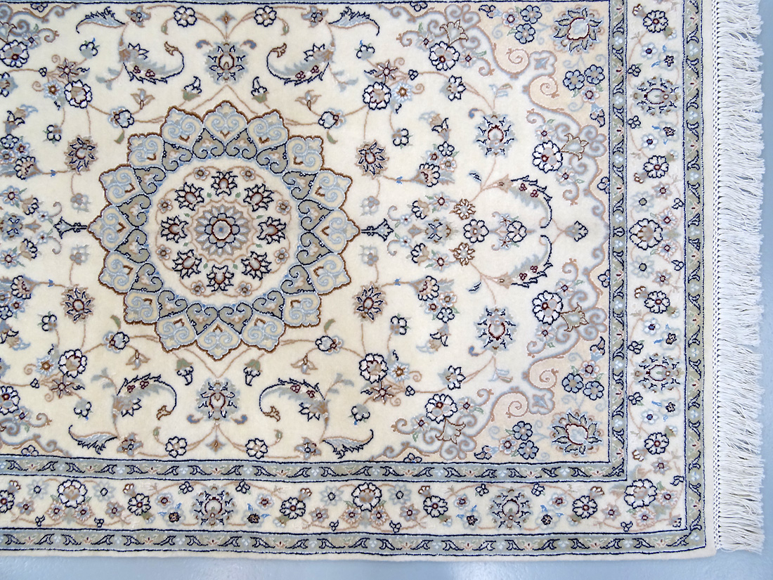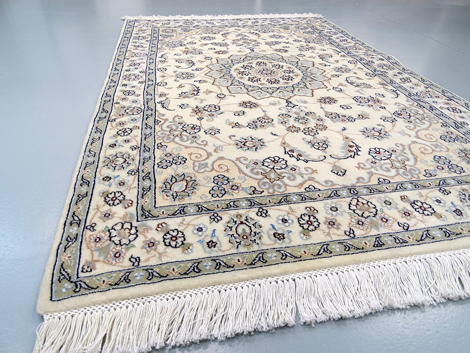 Dimensions : 145 x 96 cm -laine et soie- Pays Iran - Épaisseur : 9 mm - Densité de nouage : 360.000 Nœuds au m² - Surface : 1.39 m² - Poids : 3.48 Kgs - Age : contemporain - Confection : Noué main - Forme : Tapis de chambre - Type : Tapis persan