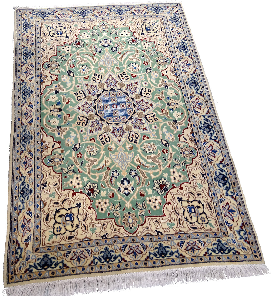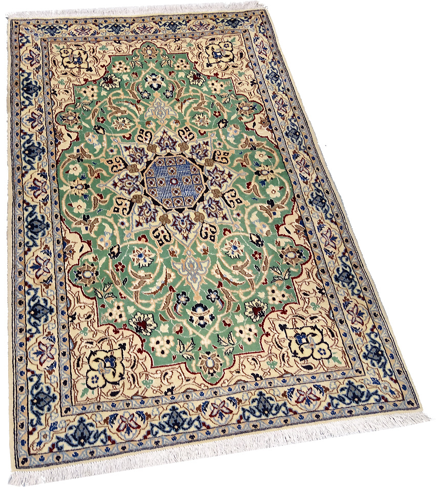 Dimensions : 140 x 89 cm -laine et soie- Pays Iran - Épaisseur : 9 mm - Densité de nouage : 360.000 Nœuds au m² - Surface : 1.25 m² - Poids : 3.12 Kgs - Age : contemporain - Confection : Noué main - Forme : Tapis de chambre - Type : Tapis persan