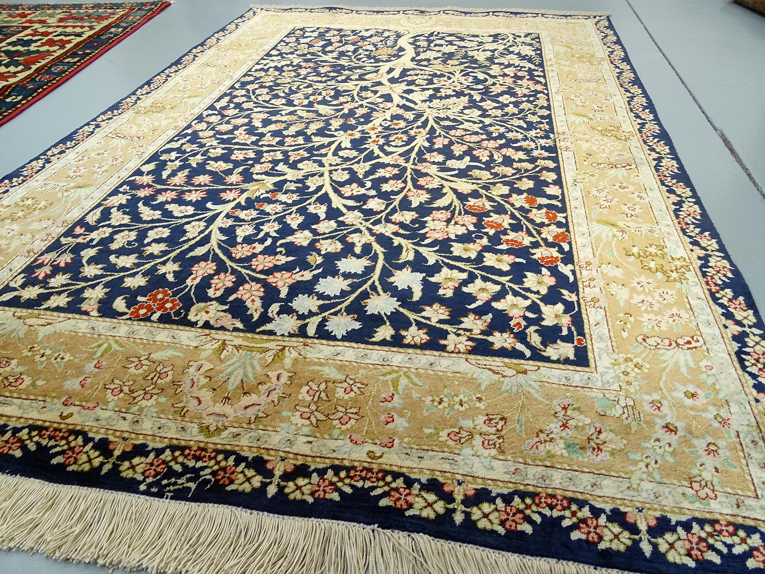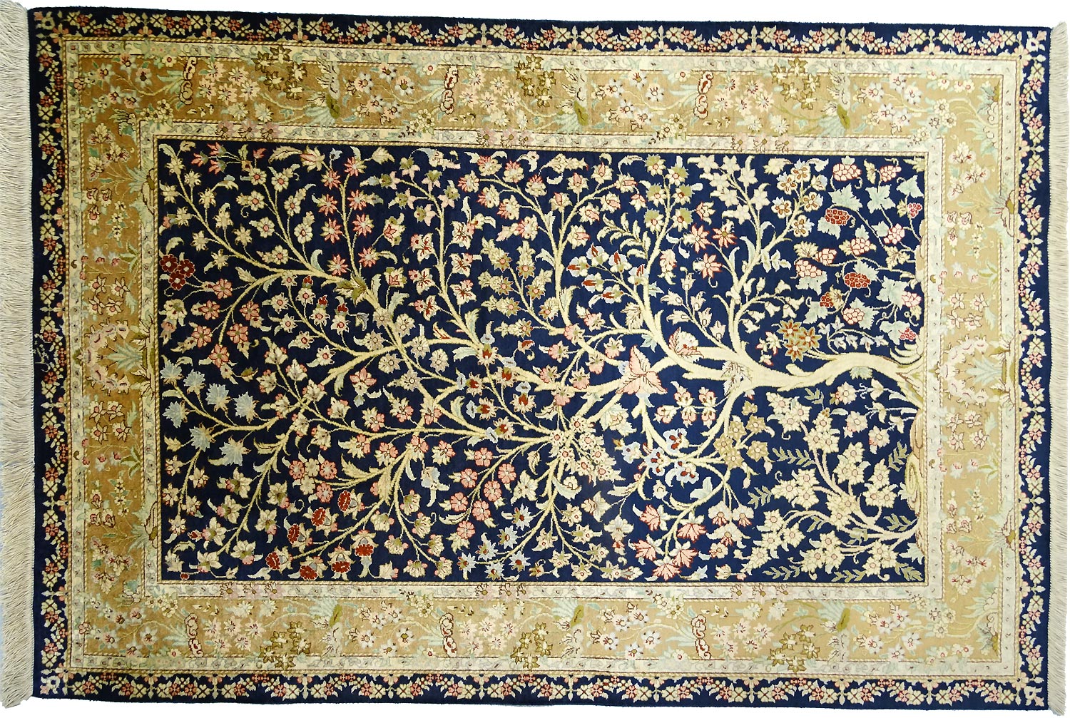 Dimensions : 150 x 100 cm -soie- Pays Iran - Épaisseur : 3 mm - Densité de nouage : 1.000.000 Nœuds au m² - Surface : 1.5 m² - Poids : 3 Kgs - Age : contemporain - Confection : Noué main - Forme : Tapis de chambre - Type : Tapis persan