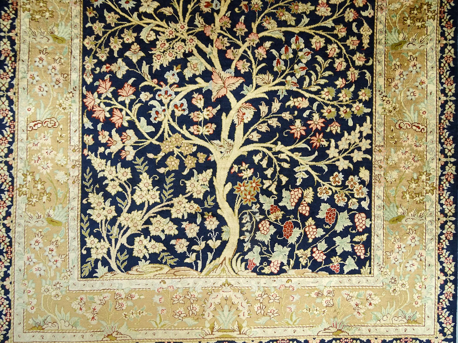 Dimensions : 140 x 97 cm -soie- Pays Iran - Épaisseur : 3 mm - Densité de nouage : 1.000.000 Nœuds au m² - Surface : 1.36 m² - Poids : 2.72 Kgs - Age : contemporain - Confection : Noué main - Forme : Tapis de chambre - Type : Tapis persan