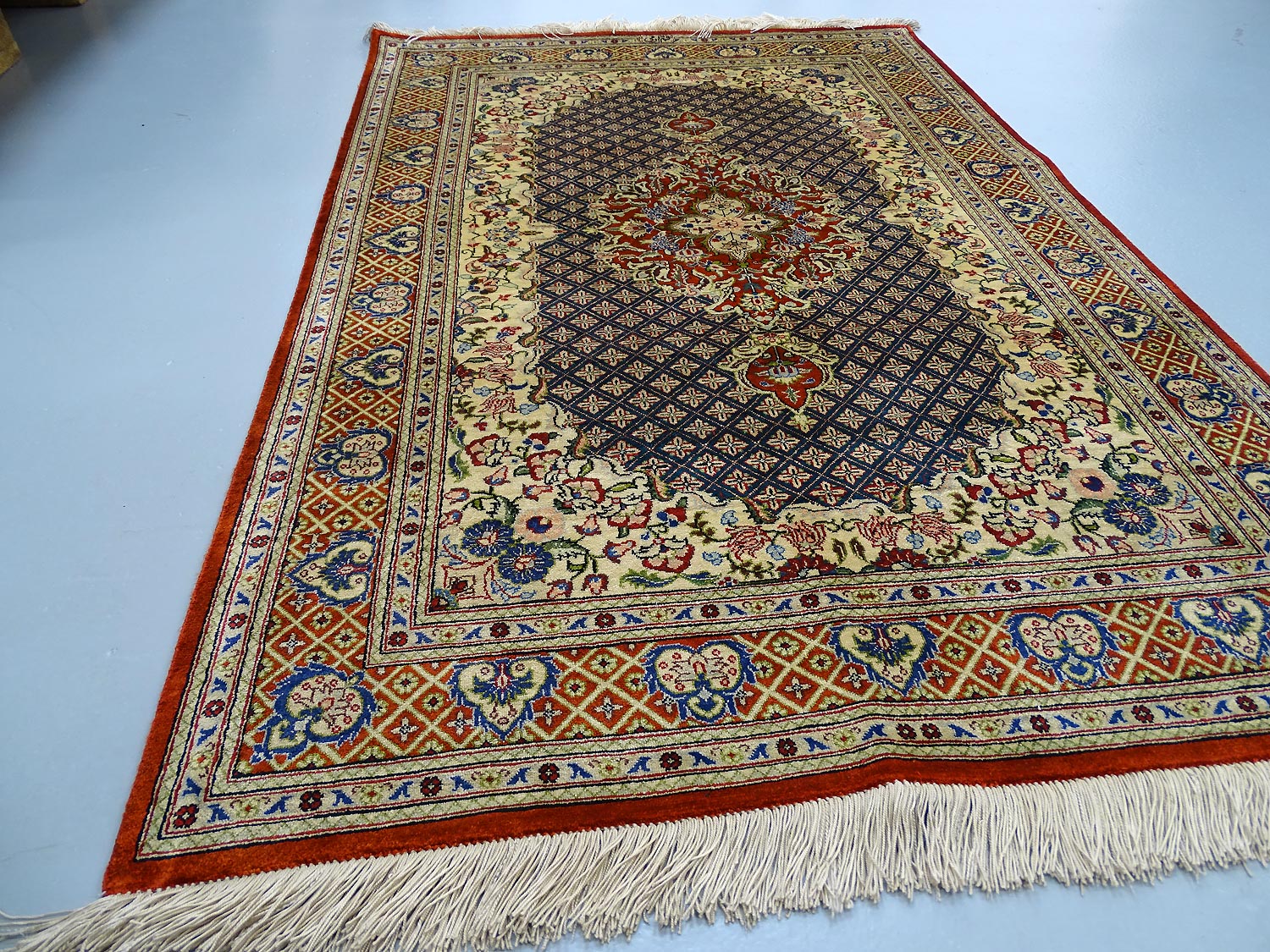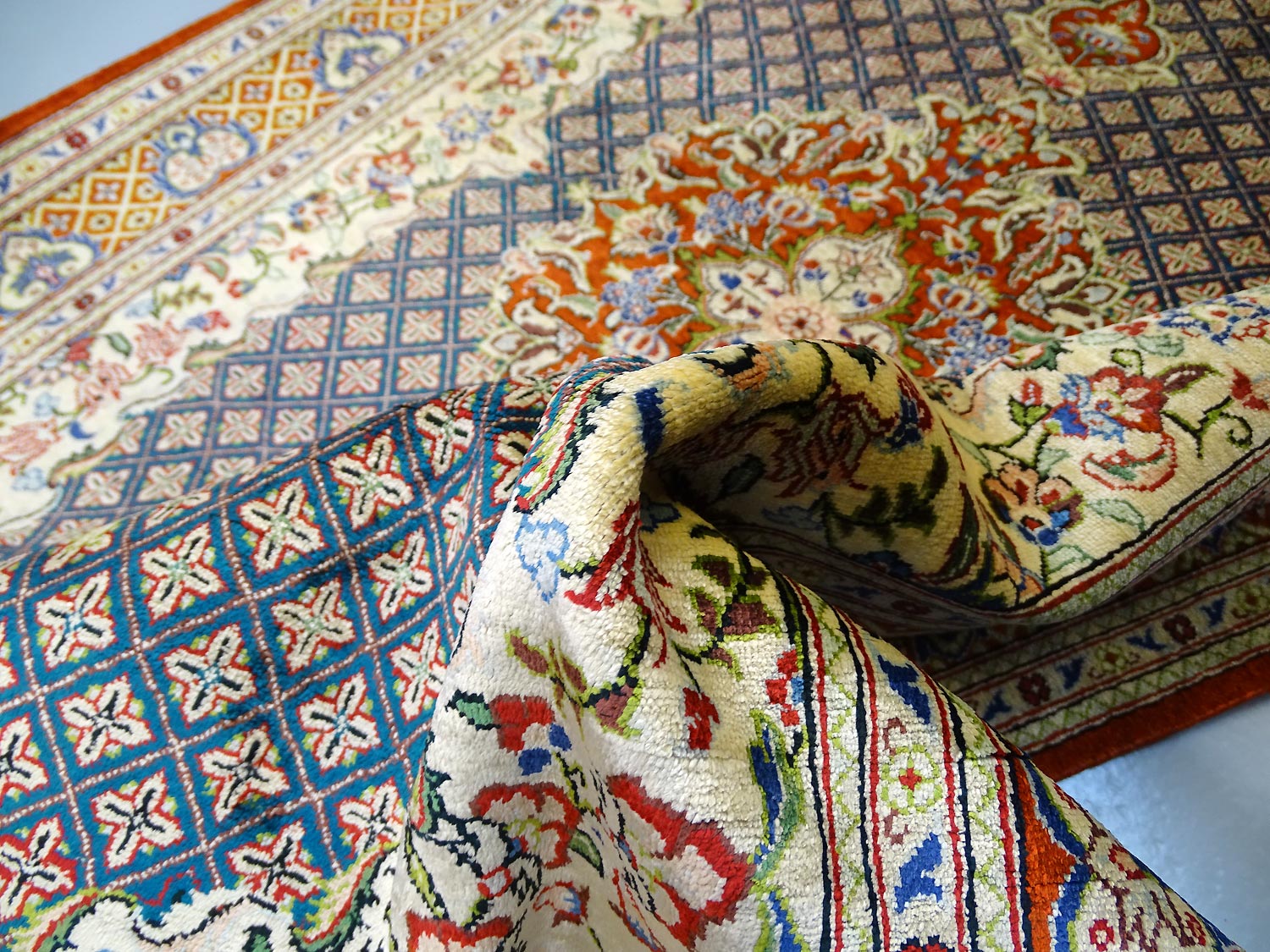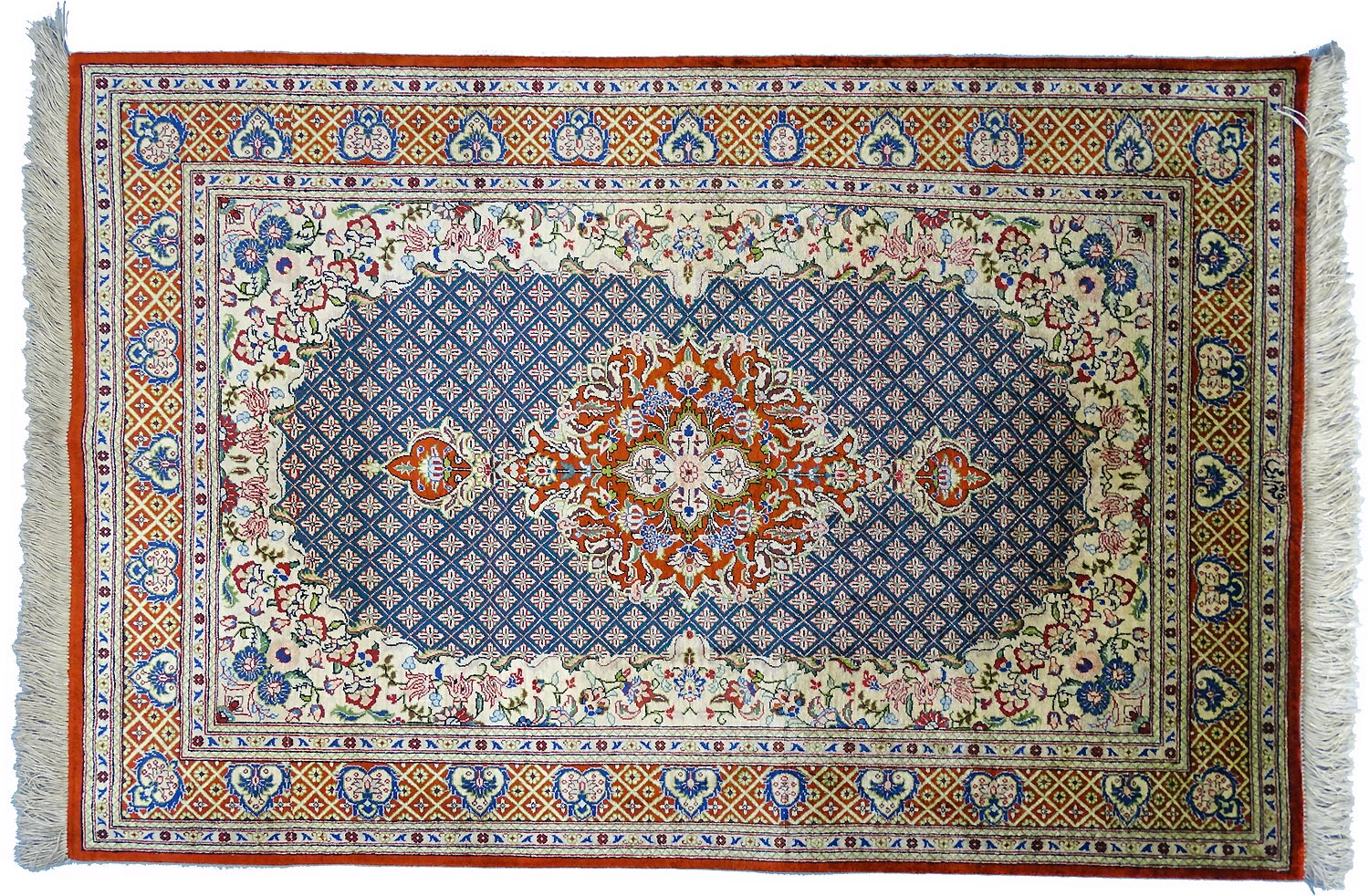 Dimensions : 115 x 77 cm -soie- Pays Iran - Épaisseur : 3 mm - Densité de nouage : 1.000.000 Nœuds au m² - Surface : 0.89 m² - Poids : 1.77 Kgs - Age : contemporain - Confection : Noué main - Forme : Tapis de chambre - Type : Tapis persan