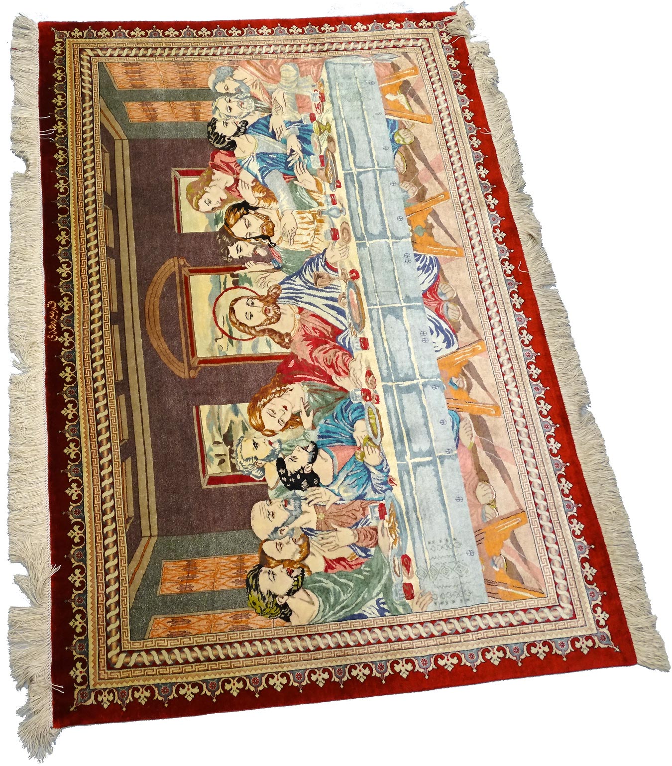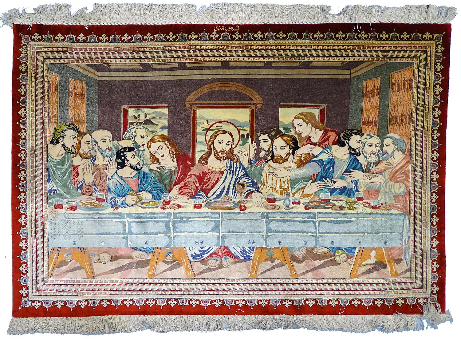 Dimensions : 140 x 97 cm -soie- Pays Iran - Épaisseur : 3 mm - Densité de nouage : 1.000.000 Nœuds au m² - Surface : 1.36 m² - Poids : 2.72 Kgs - Age : contemporain - Confection : Noué main - Forme : Tapis de chambre - Type : Tapis persan