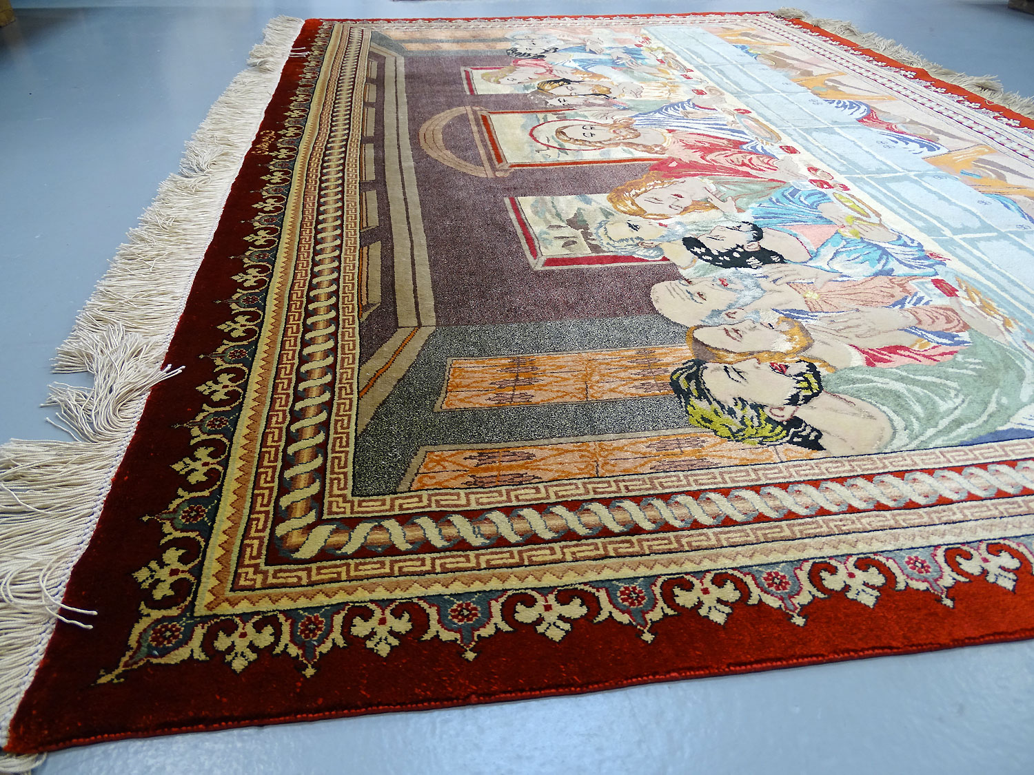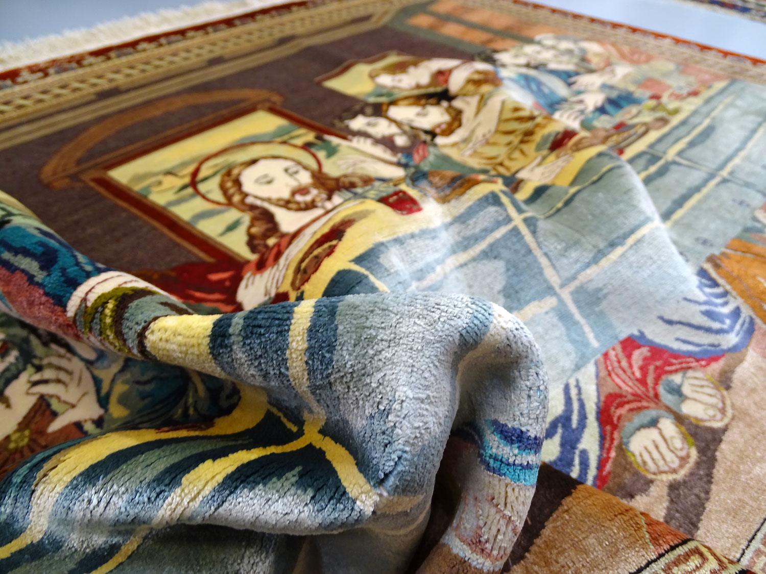 Dimensions : 150 x 100 cm -soie- Pays Iran - Épaisseur : 3 mm - Densité de nouage : 1.000.000 Nœuds au m² - Surface : 1.5 m² - Poids : 3 Kgs - Age : contemporain - Confection : Noué main - Forme : Tapis de chambre - Type : Tapis persan