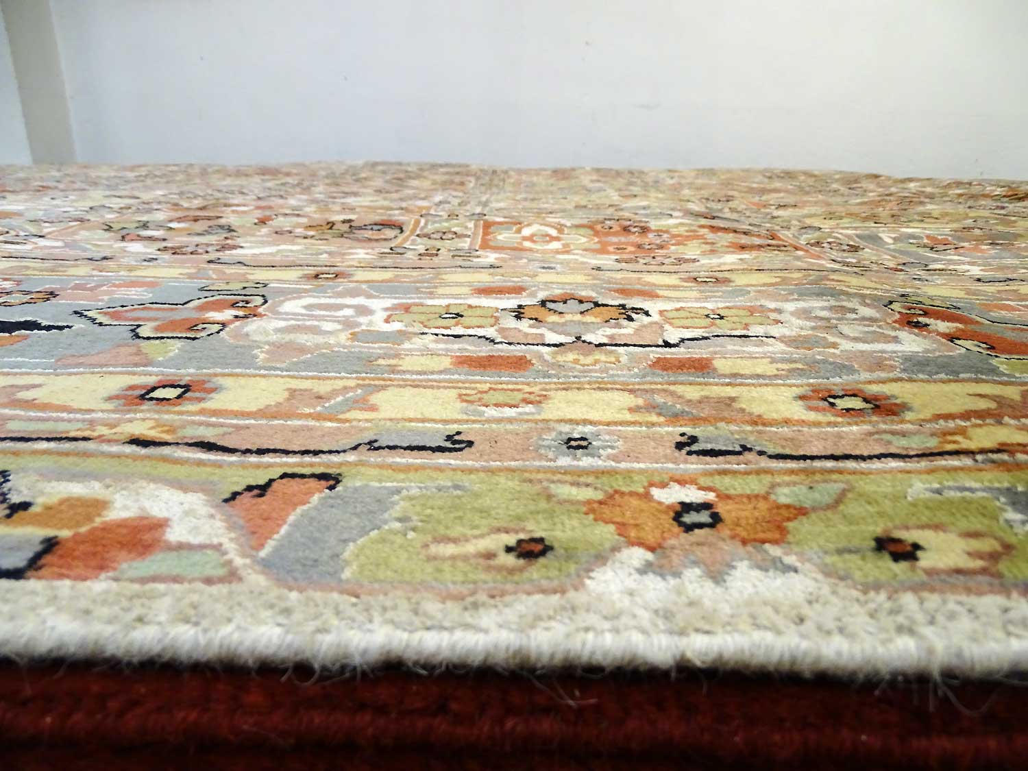 Dimensions : 369 x 275 cm -laine et soie- Pays Pakistan - Épaisseur : 7 mm - Densité de nouage : 200.000 Nœuds au m² - Surface : 10.15 m² - Poids : 25.37 Kgs - Age : contemporain - Confection : Noué main - Forme : Tapis de salon - Type : Tapis Oriental