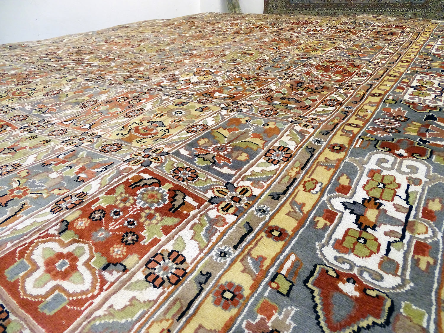 Dimensions : 375 x 284 cm -laine et soie- Pays Pakistan - Épaisseur : 7 mm - Densité de nouage : 200.000 Nœuds au m² - Surface : 10.65 m² - Poids : 26.63 Kgs - Age : contemporain - Confection : Noué main - Forme : Tapis de salon - Type : Tapis Oriental