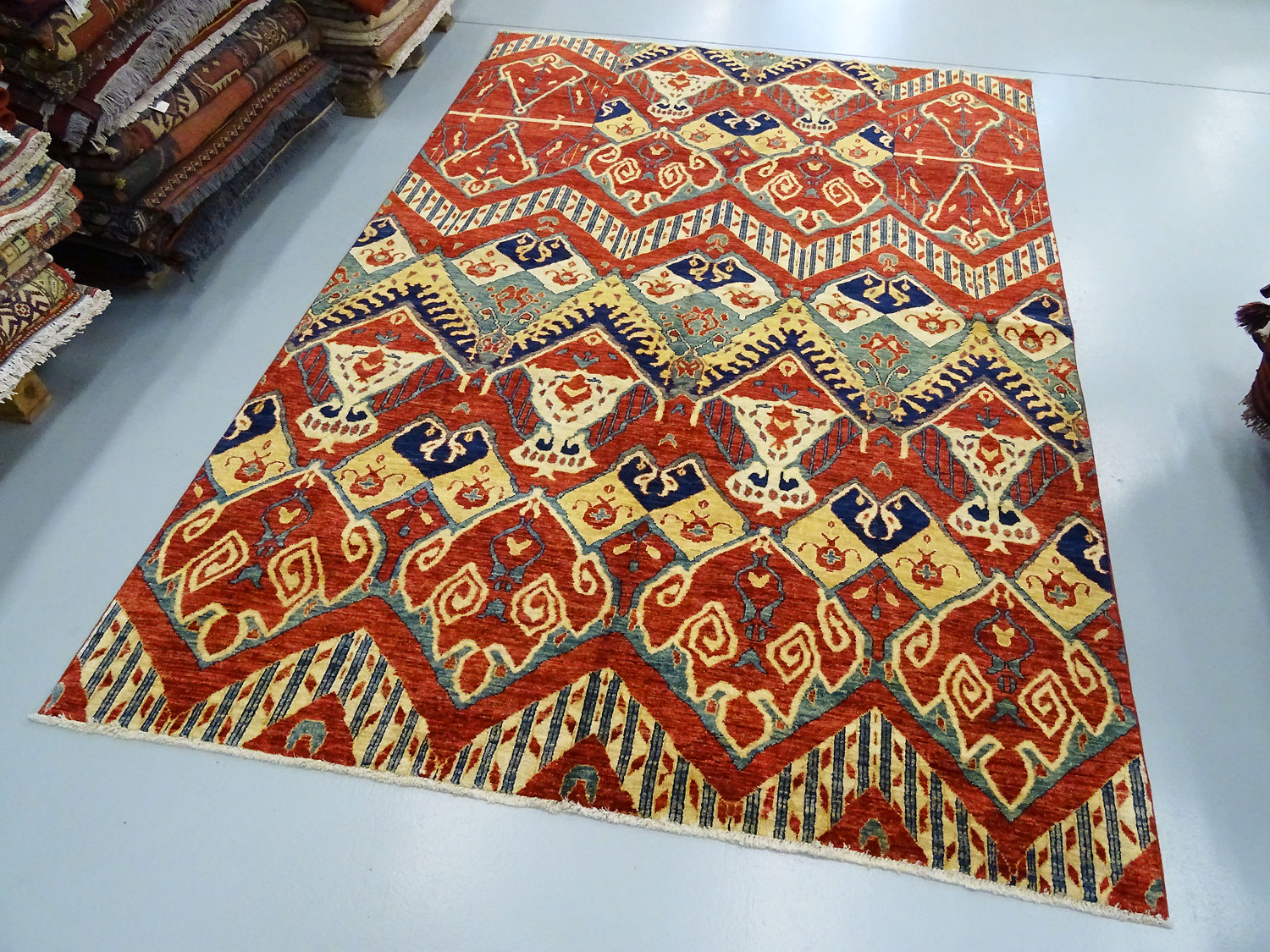 Dimensions : 289 x 206 cm -laine- Pays Afghanistan - Épaisseur : 8 mm - Densité de nouage : 200.000 Nœuds au m² - Surface : 5.95 m² - Poids : 17.86 Kgs - Age : contemporain - Confection : Noué main - Forme : Tapis de salon - Type : Tapis Oriental