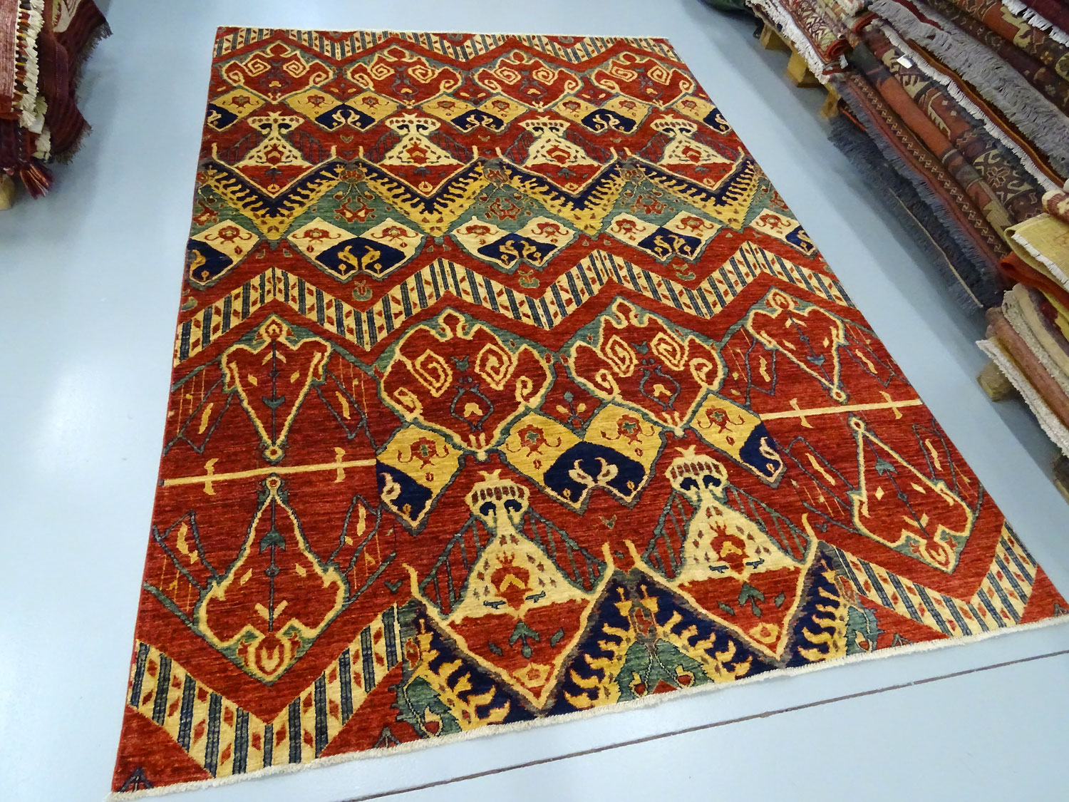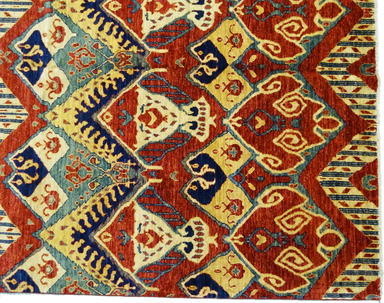 Dimensions : 290 x 200 cm -laine- Pays Afghanistan - Épaisseur : 8 mm - Densité de nouage : 200.000 Nœuds au m² - Surface : 5.8 m² - Poids : 17.4 Kgs - Age : contemporain - Confection : Noué main - Forme : Tapis de salon - Type : Tapis de decoration