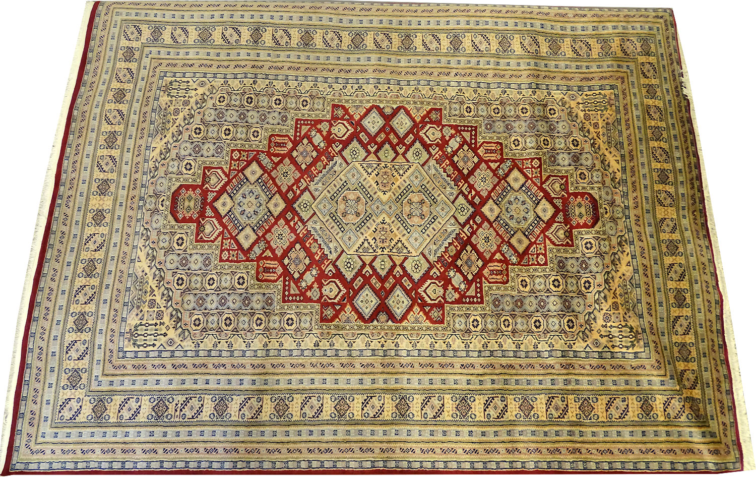 Dimensions : 379 x 274 cm -laine- Pays Pakistan - Épaisseur : 7 mm - Densité de nouage : 250.000 Nœuds au m² - Surface : 10.38 m² - Poids : 20.77 Kgs - Age : contemporain - Confection : Noué main - Forme : Tapis de salon - Type : Tapis Oriental