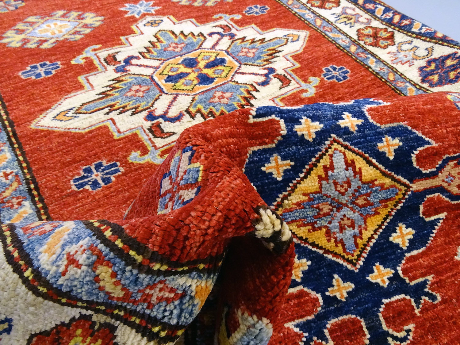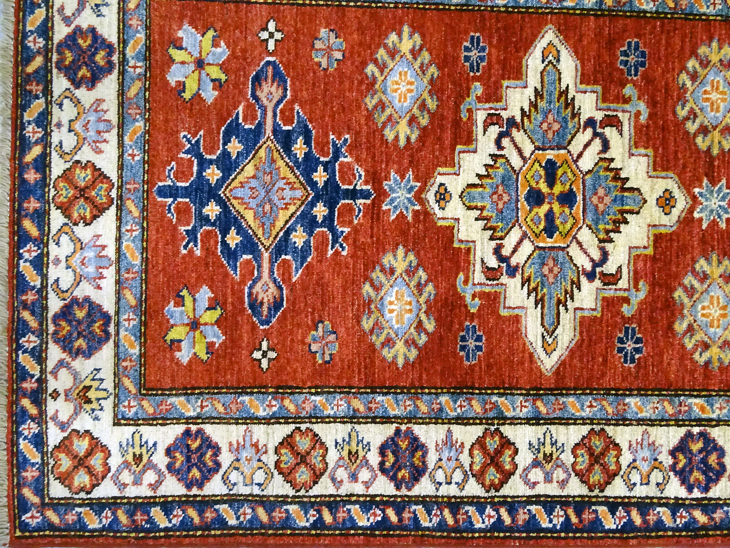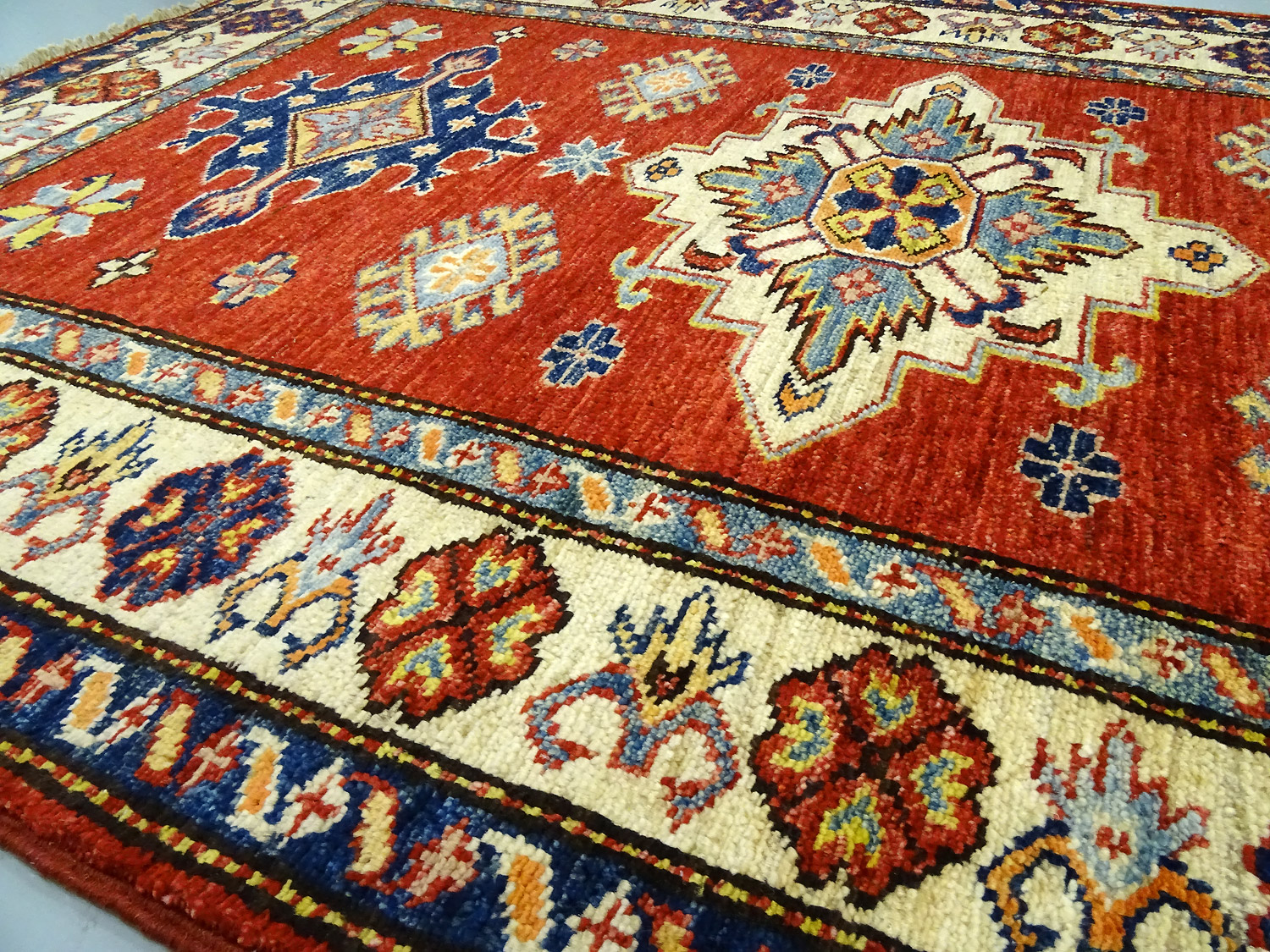 Dimensions : 144 x 88 cm -laine- Pays Afghanistan - Épaisseur : 8 mm - Densité de nouage : 300.000 Nœuds au m² - Surface : 1.27 m² - Poids : 3.8 Kgs - Age : contemporain - Confection : Noué main - Forme : Tapis de chambre - Type : Tapis Oriental