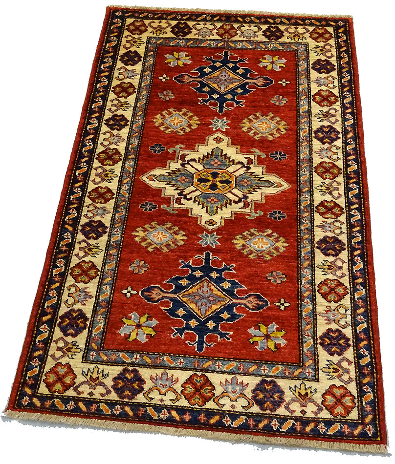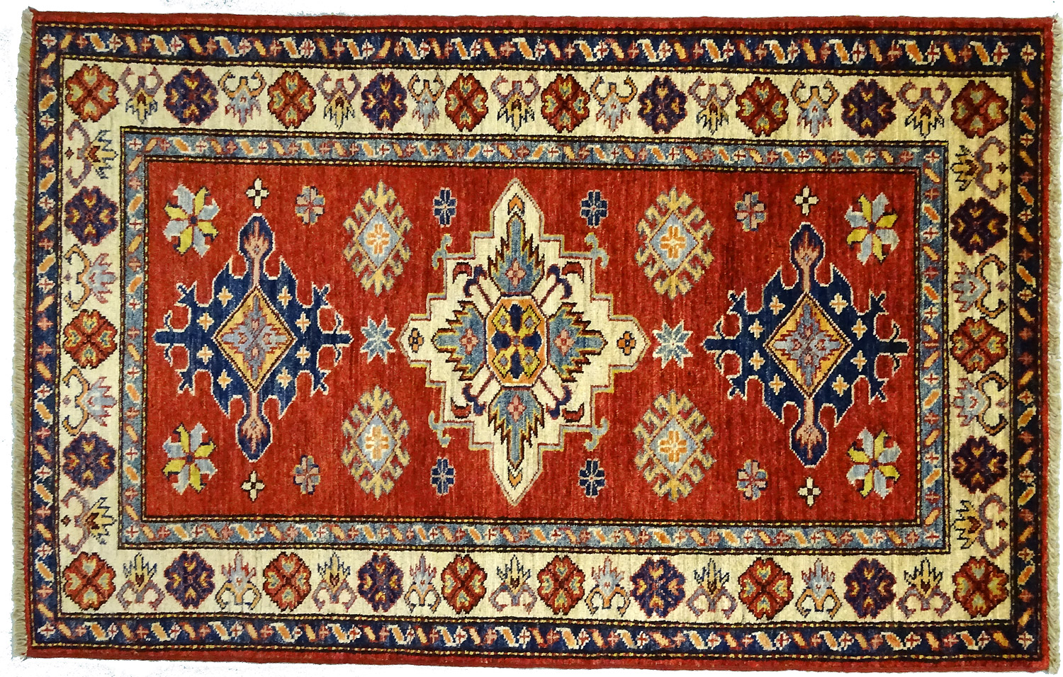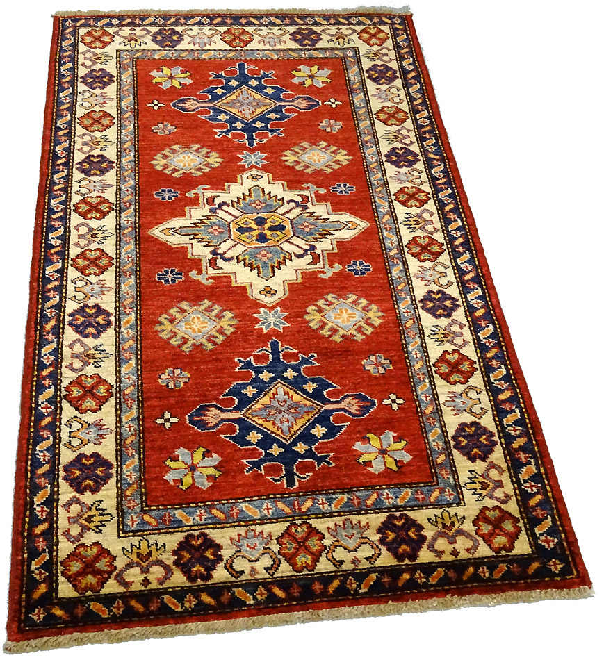 Dimensions : 144 x 88 cm -laine- Pays Afghanistan - Épaisseur : 8 mm - Densité de nouage : 300.000 Nœuds au m² - Surface : 1.27 m² - Poids : 3.8 Kgs - Age : contemporain - Confection : Noué main - Forme : Tapis de chambre - Type : Tapis Oriental