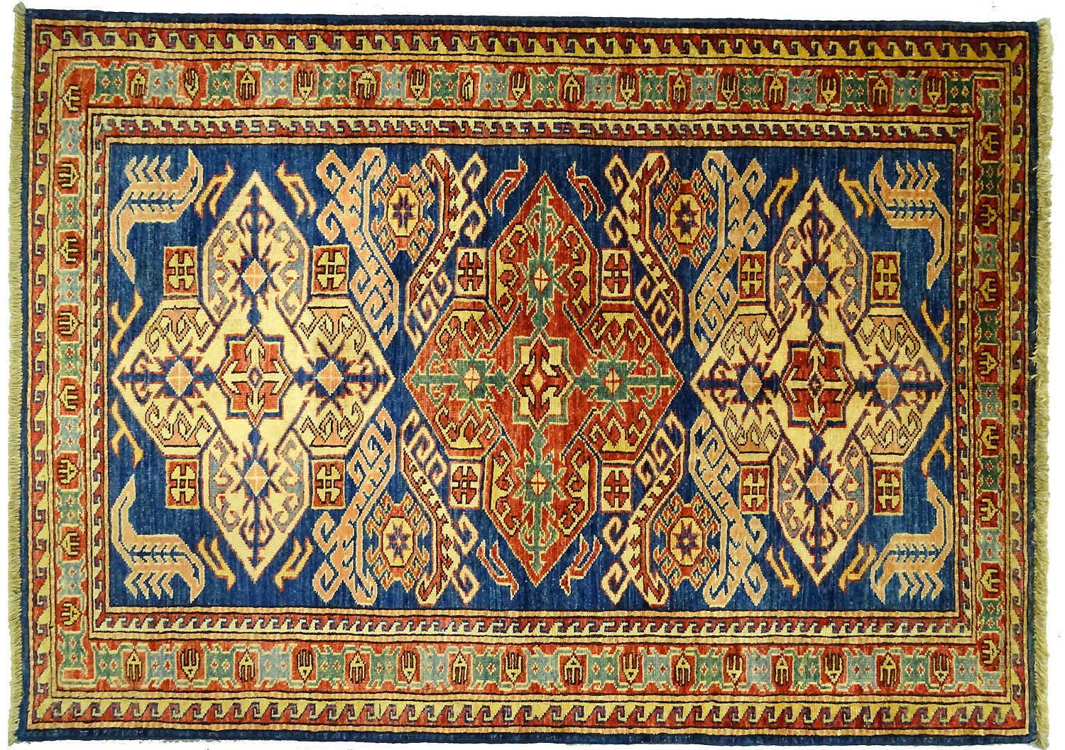 Dimensions : 132 x 97 cm -laine- Pays Afghanistan - Épaisseur : 8 mm - Densité de nouage : 300.000 Nœuds au m² - Surface : 1.28 m² - Poids : 3.84 Kgs - Age : contemporain - Confection : Noué main - Forme : Tapis de chambre - Type : Tapis Oriental