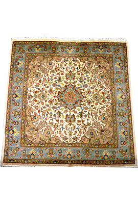 Dimensions : 165 x 165 cm -laine et soie- Pays Iran - Épaisseur : mm - Densité de nouage : Nœuds au m² - Surface : 0 m² - Poids : 0 Kgs - Age : - Confection : - Forme : - Type :