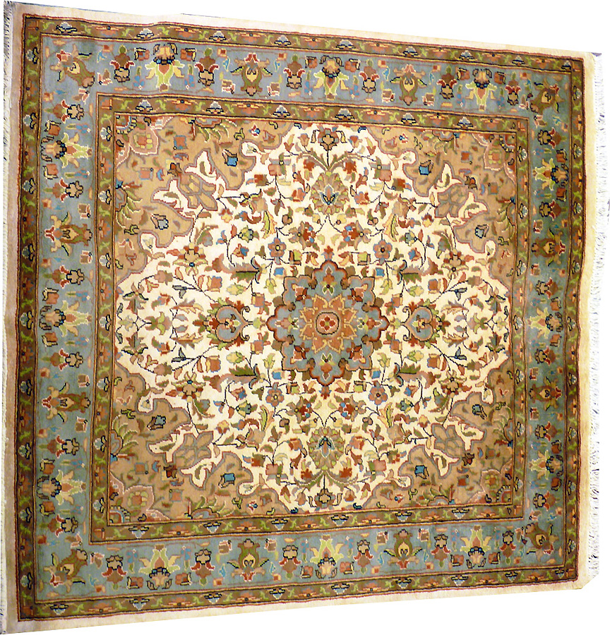 Dimensions : 150 x 150 cm -laine- Pays Iran - Épaisseur : mm - Densité de nouage : Nœuds au m² - Surface : 0 m² - Poids : 0 Kgs - Age : - Confection : - Forme : - Type :