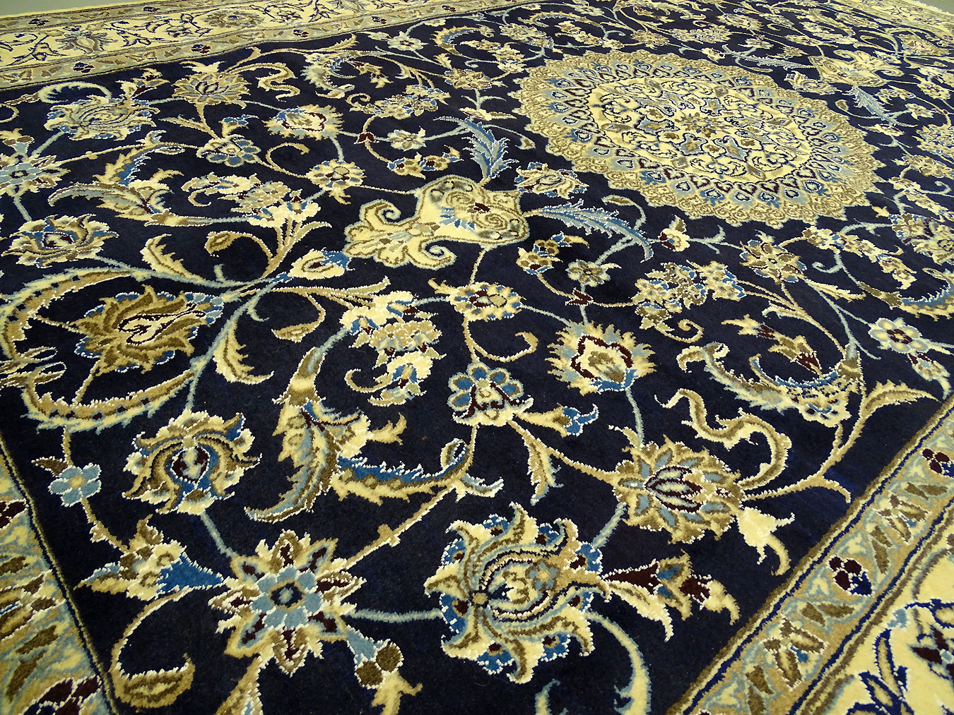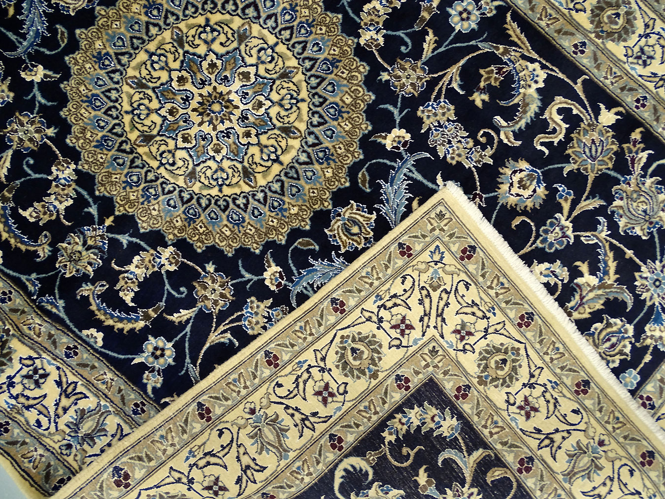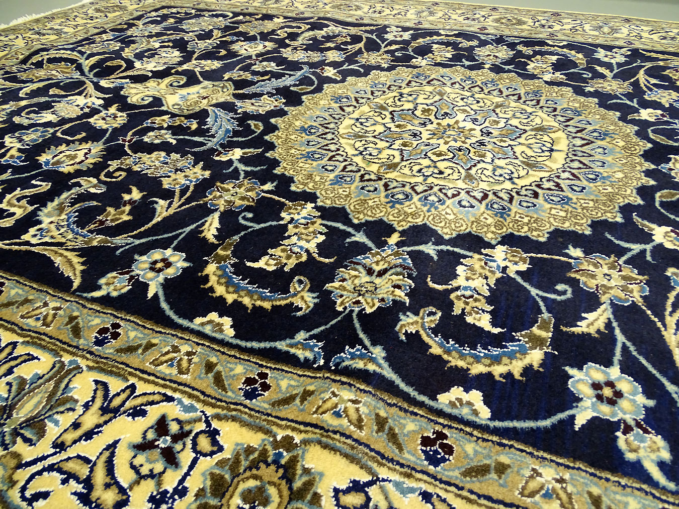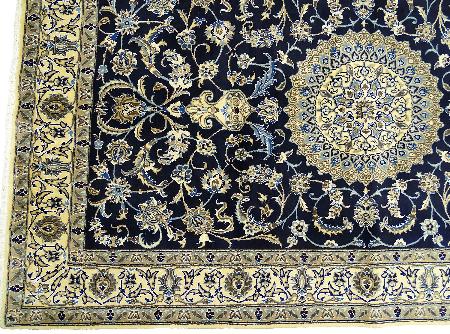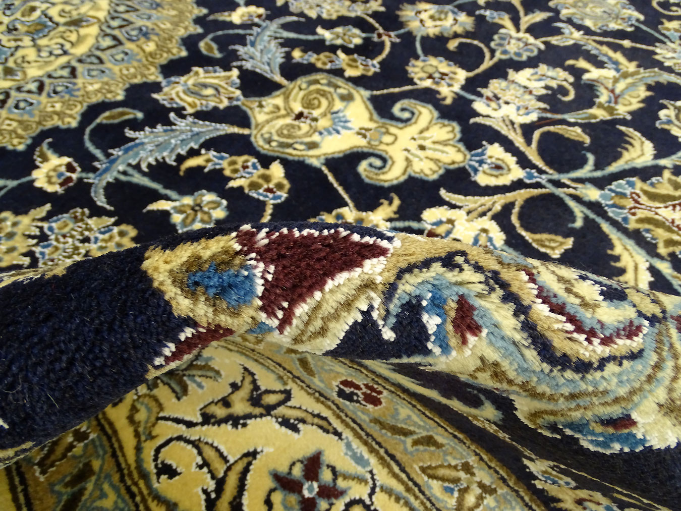 Dimensions : 298 x 195 cm -laine et soie- Pays Iran - Épaisseur : 9 mm - Densité de nouage : 360.000 Nœuds au m² - Surface : 5.81 m² - Poids : 14.53 Kgs - Age : contemporain - Confection : Noué main - Forme : Tapis de salon - Type : Tapis persan