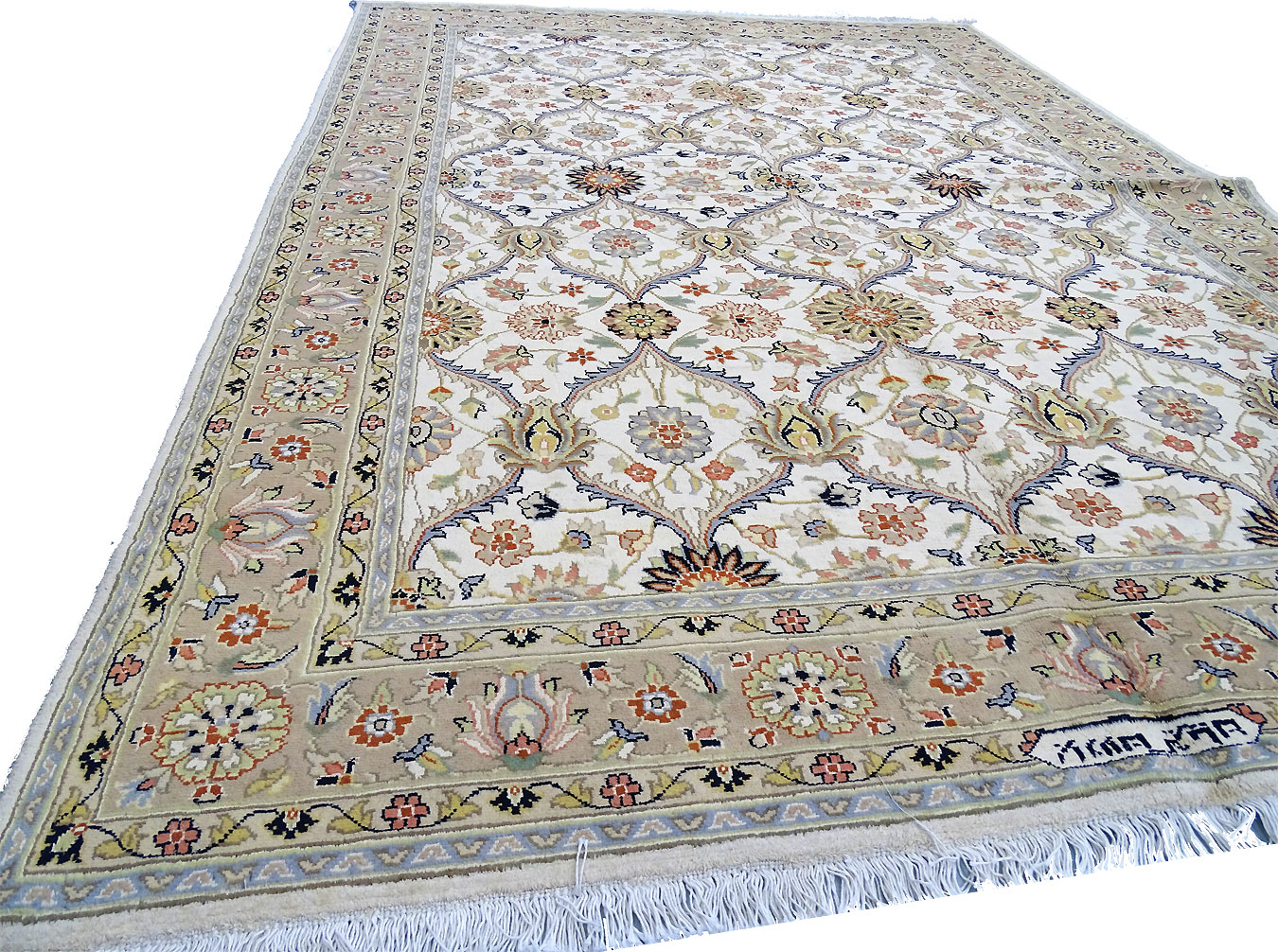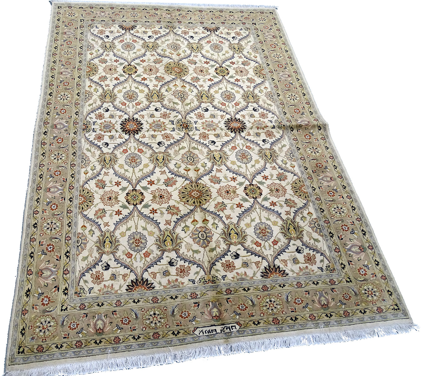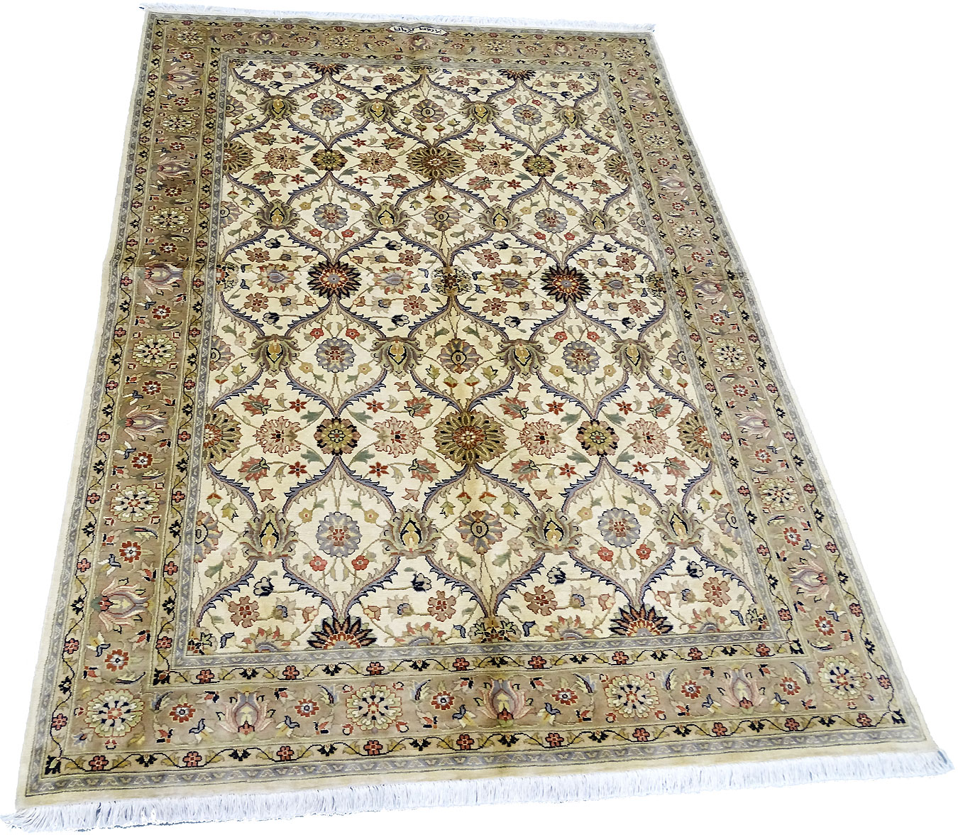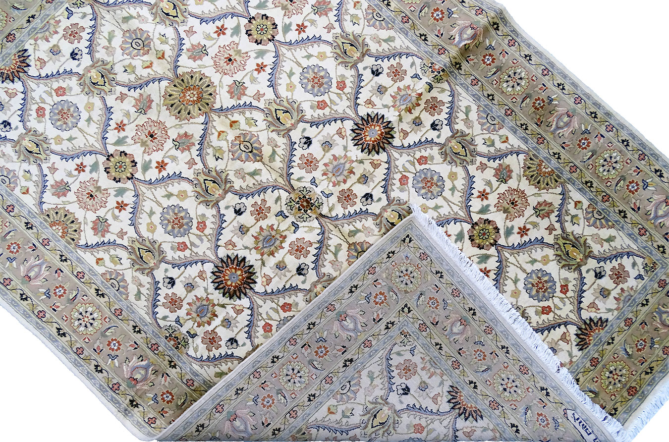 Dimensions : 248 x 169 cm -laine et soie- Pays Inde - Épaisseur : 10 mm - Densité de nouage : 500.000 Nœuds au m² - Surface : 4.19 m² - Poids : 10.48 Kgs - Age : contemporain - Confection : Noué main - Forme : Tapis de chambre - Type : Tapis Oriental