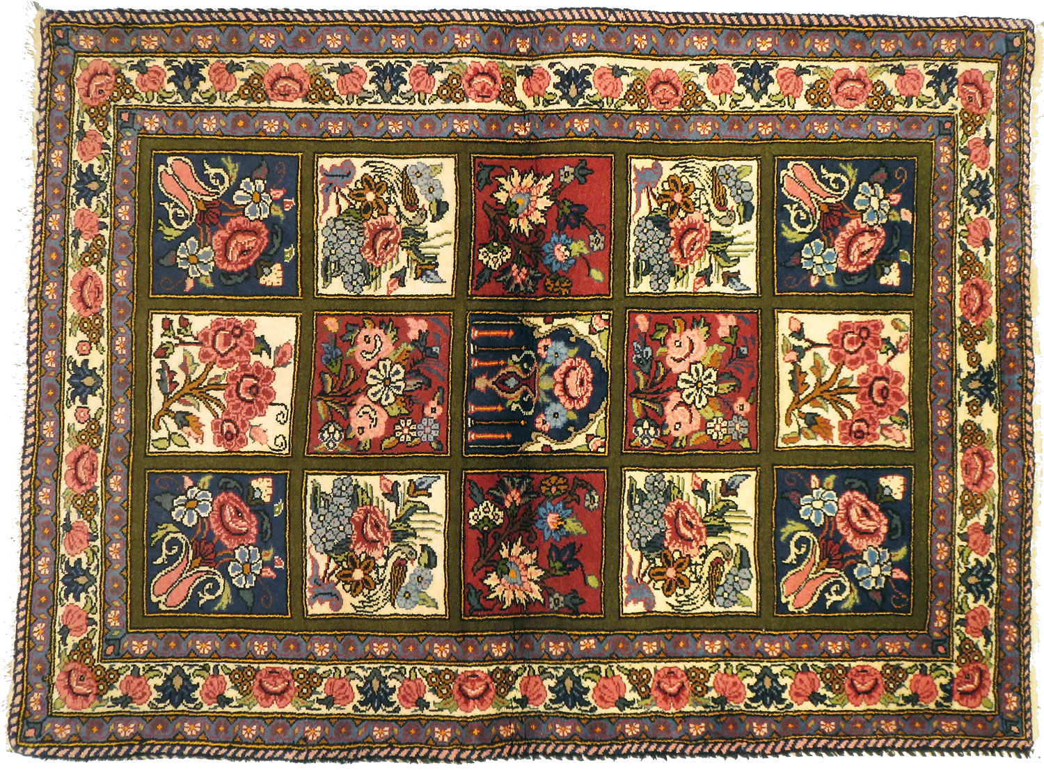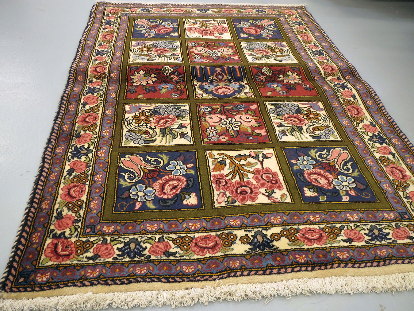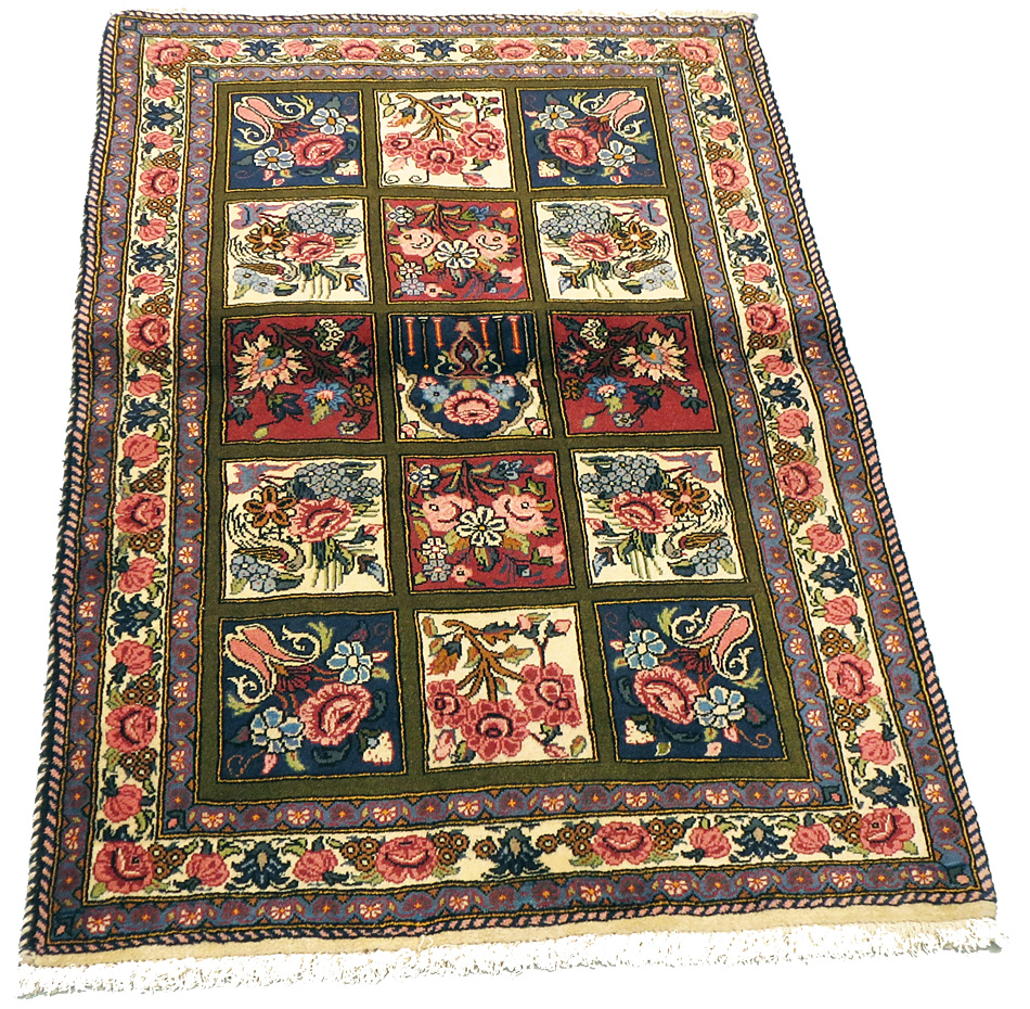 Dimensions : 154 x 102 cm -laine- Pays Iran - Épaisseur : mm - Densité de nouage : Nœuds au m² - Surface : 0 m² - Poids : 0 Kgs - Age : - Confection : - Forme : - Type :