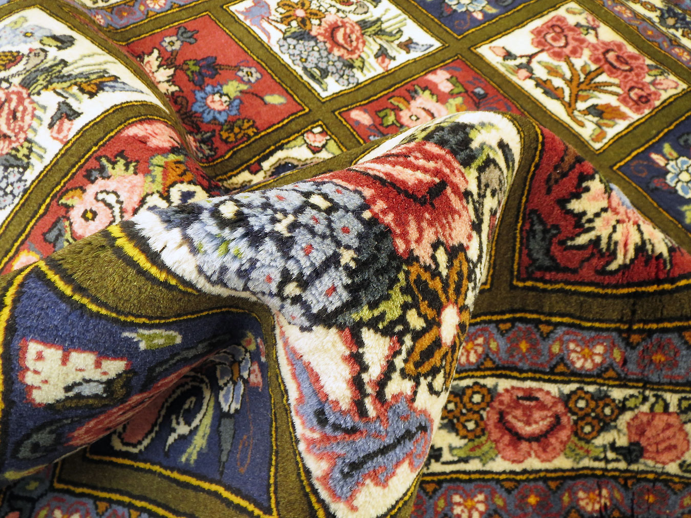 Dimensions : 150 x 100 cm -soie- Pays Iran - Épaisseur : mm - Densité de nouage : Nœuds au m² - Surface : 0 m² - Poids : 0 Kgs - Age : - Confection : - Forme : - Type :