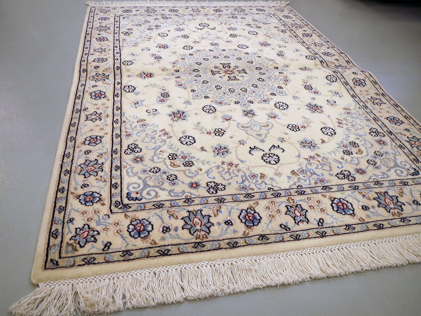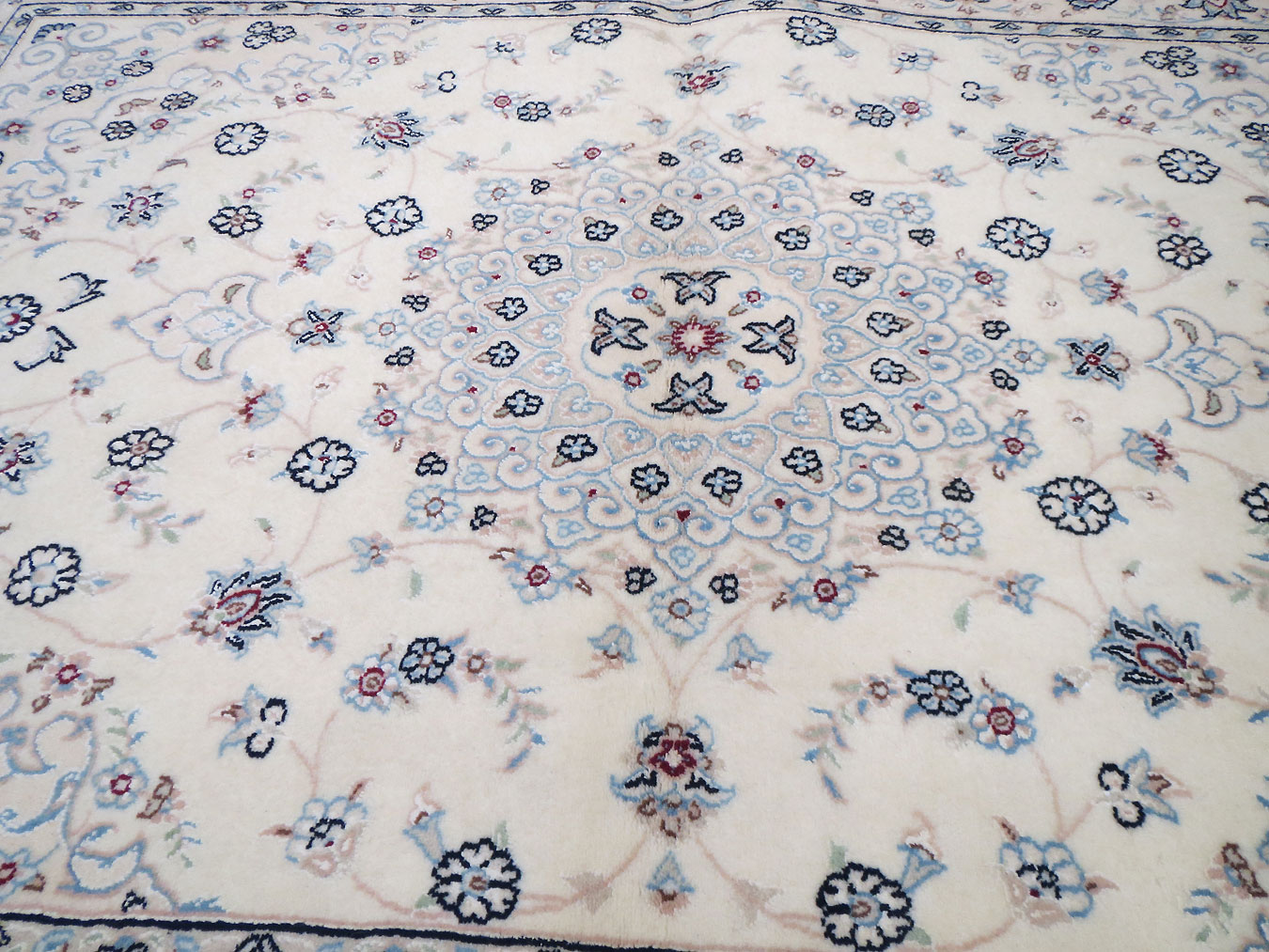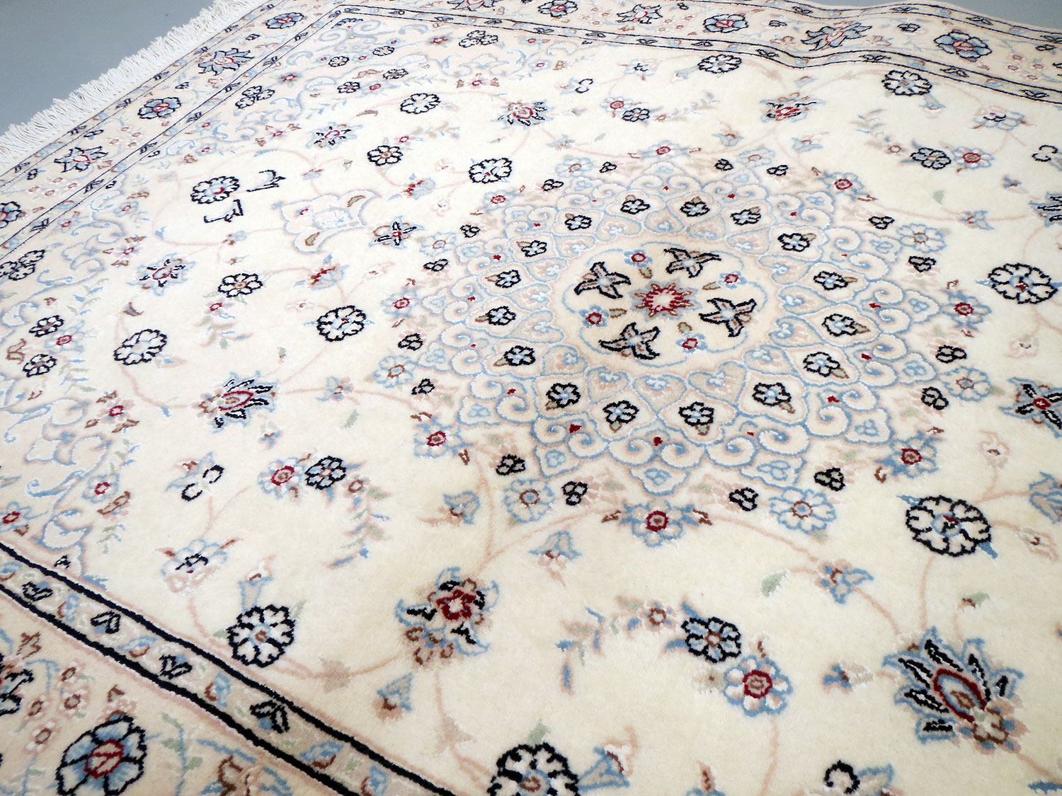Dimensions : 145 x 96 cm -laine et soie- Pays Iran - Épaisseur : 9 mm - Densité de nouage : 360.000 Nœuds au m² - Surface : 1.39 m² - Poids : 3.48 Kgs - Age : contemporain - Confection : Noué main - Forme : Tapis de chambre - Type : Tapis persan