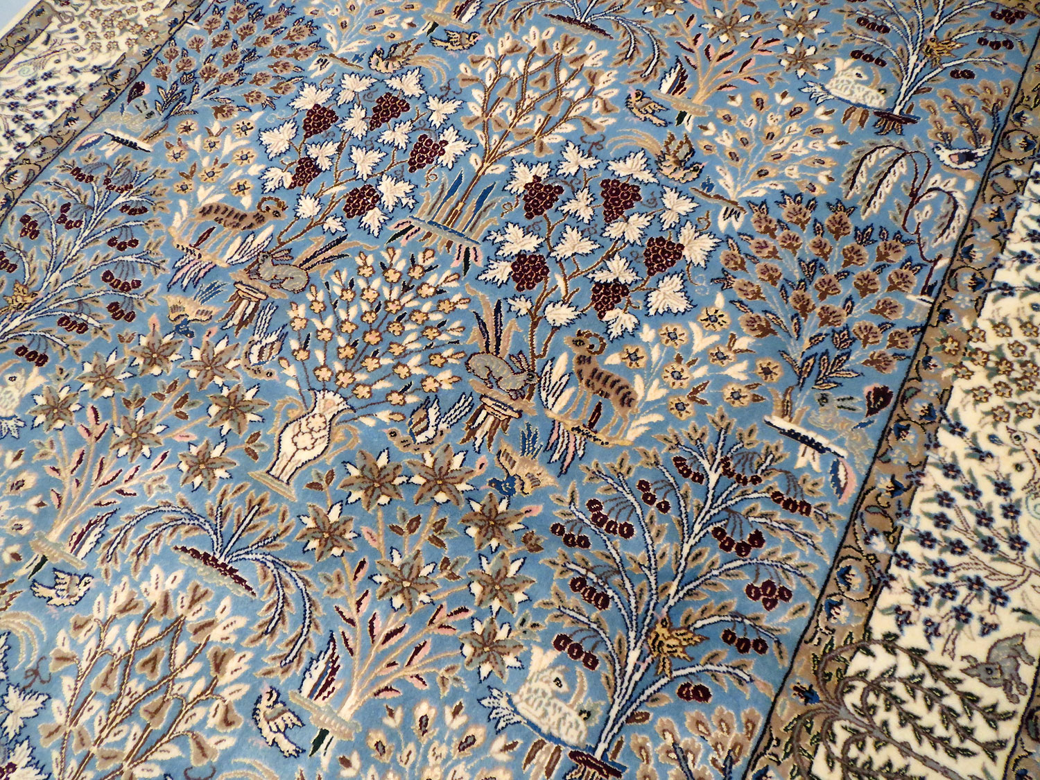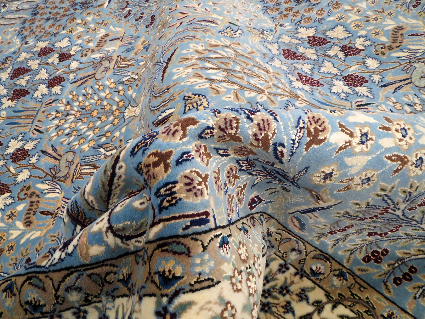 Dimensions : 164 x 115 cm -laine et soie- Pays Iran - Épaisseur : 7 mm - Densité de nouage : 800.000 Nœuds au m² - Surface : 1.89 m² - Poids : 4.72 Kgs - Age : contemporain - Confection : Noué main - Forme : Tapis de chambre - Type : Tapis persan