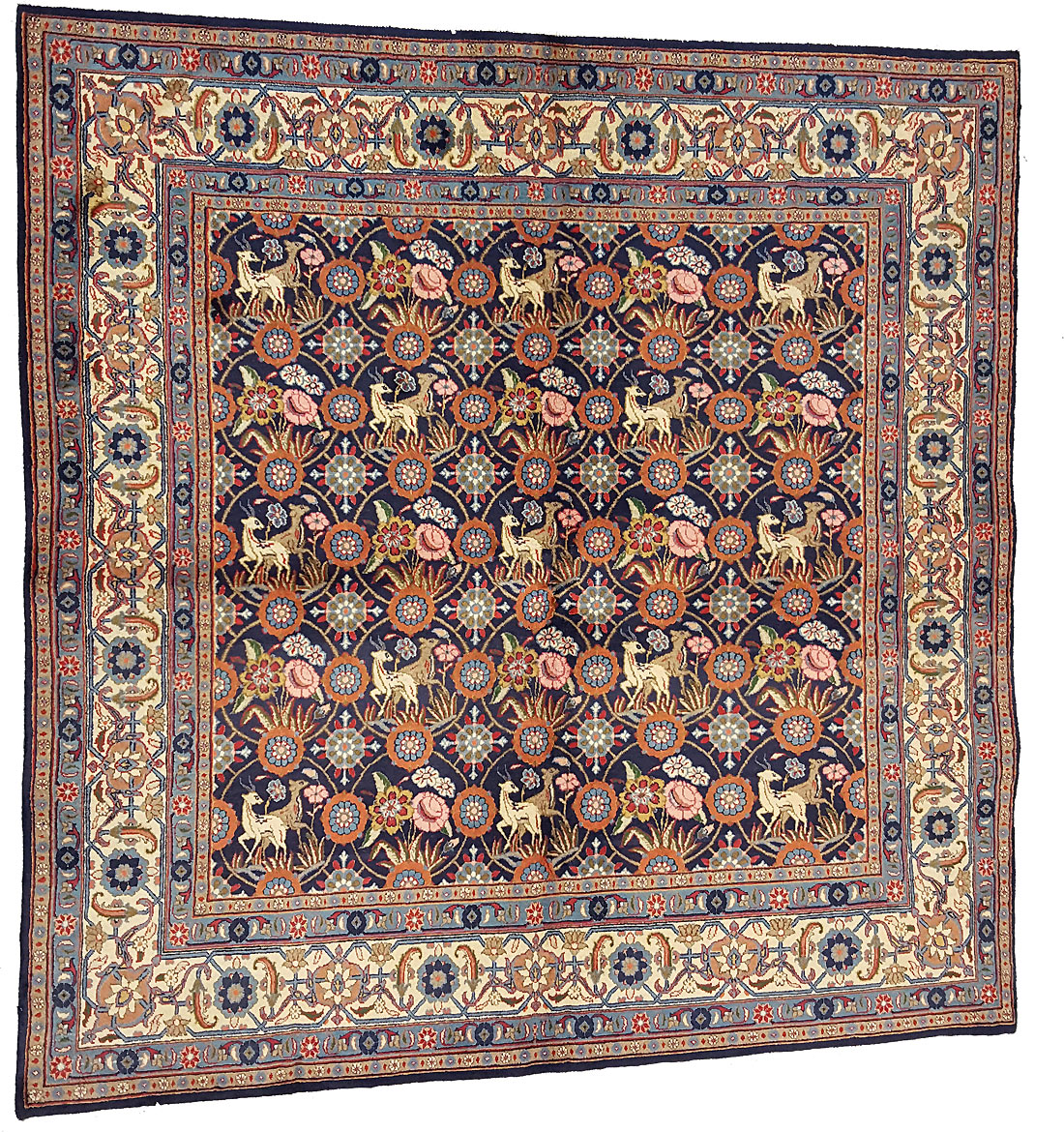 Dimensions : 200 x 200 cm -laine- Pays Iran - Épaisseur : 10 mm - Densité de nouage : 160.000 Nœuds au m² - Surface : 4 m² - Poids : 12 Kgs - Age : contemporain - Confection : Noué main - Forme : Tapis carré - Type : Tapis persan