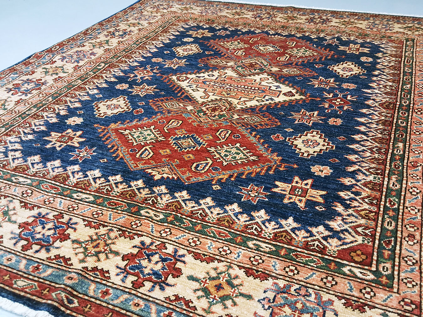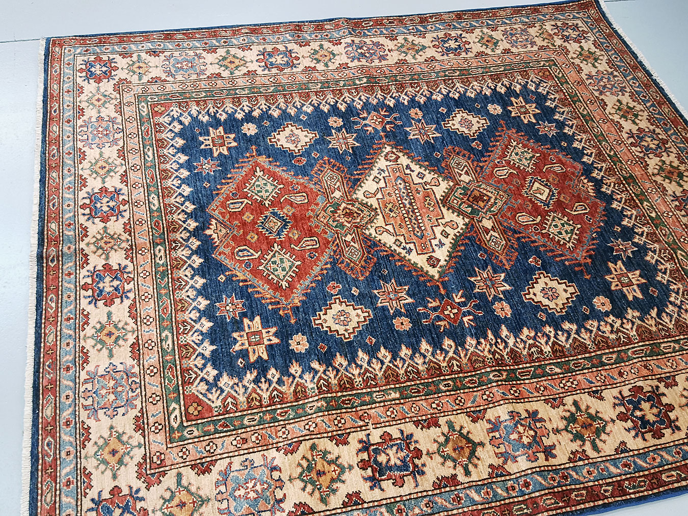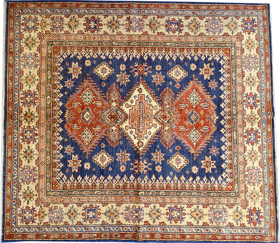 Dimensions : 195 x 175 cm -laine- Pays Afghanistan - Épaisseur : 8 mm - Densité de nouage : 300.000 Nœuds au m² - Surface : 3.41 m² - Poids : 10.24 Kgs - Age : contemporain - Confection : Noué main - Forme : Tapis carré - Type : Tapis Oriental