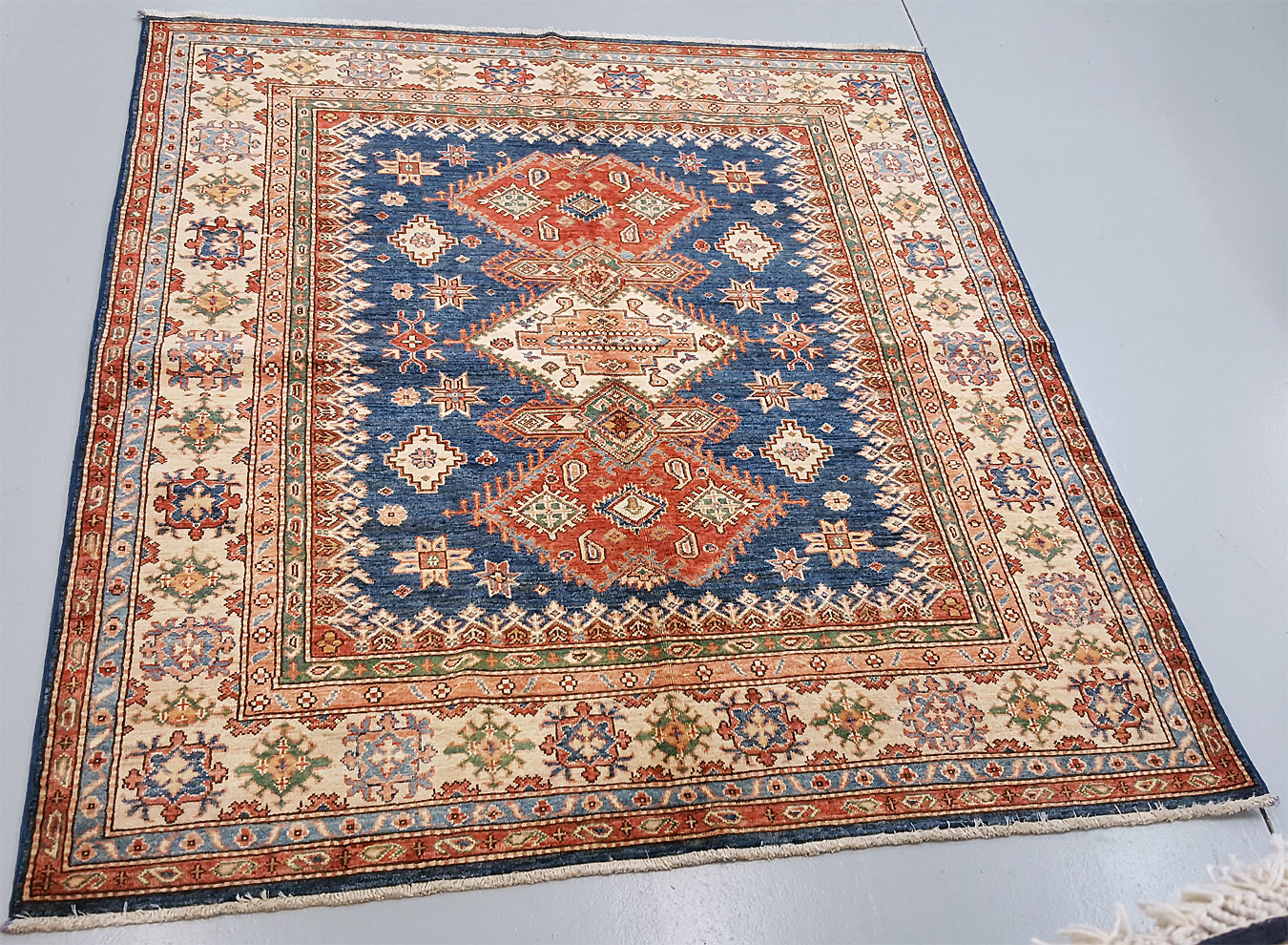 Dimensions : 198 x 197 cm -laine- Pays Afghanistan - Épaisseur : 8 mm - Densité de nouage : 300.000 Nœuds au m² - Surface : 3.9 m² - Poids : 11.7 Kgs - Age : contemporain - Confection : Noué main - Forme : Tapis carré - Type : Tapis Oriental