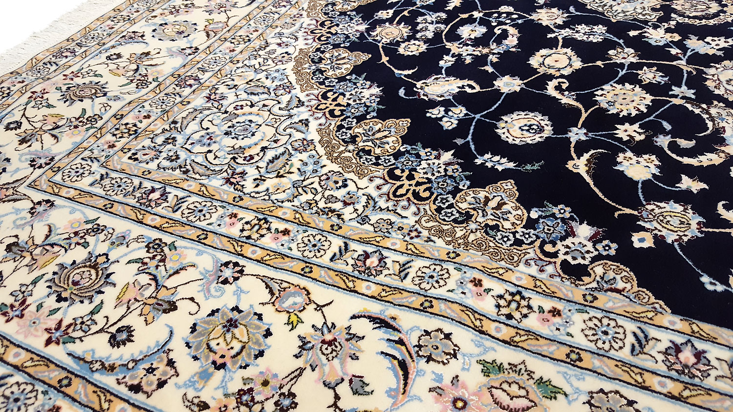 Dimensions : 300 x 200 cm -laine et soie- Pays Iran - Épaisseur : 8 mm - Densité de nouage : 800.000 Nœuds au m² - Surface : 6 m² - Poids : 15 Kgs - Age : contemporain - Confection : Noué main - Forme : Tapis de salon - Type : Tapis persan