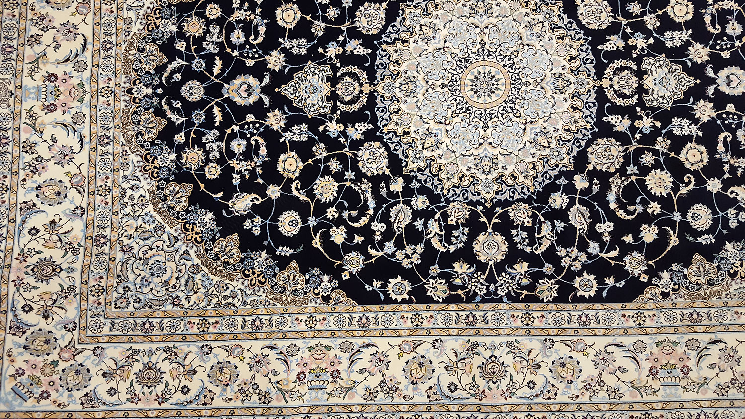 Dimensions : 300 x 197 cm -laine et soie- Pays Iran - Épaisseur : 8 mm - Densité de nouage : 800.000 Nœuds au m² - Surface : 5.91 m² - Poids : 14.78 Kgs - Age : contemporain - Confection : Noué main - Forme : Tapis de salon - Type : Tapis persan