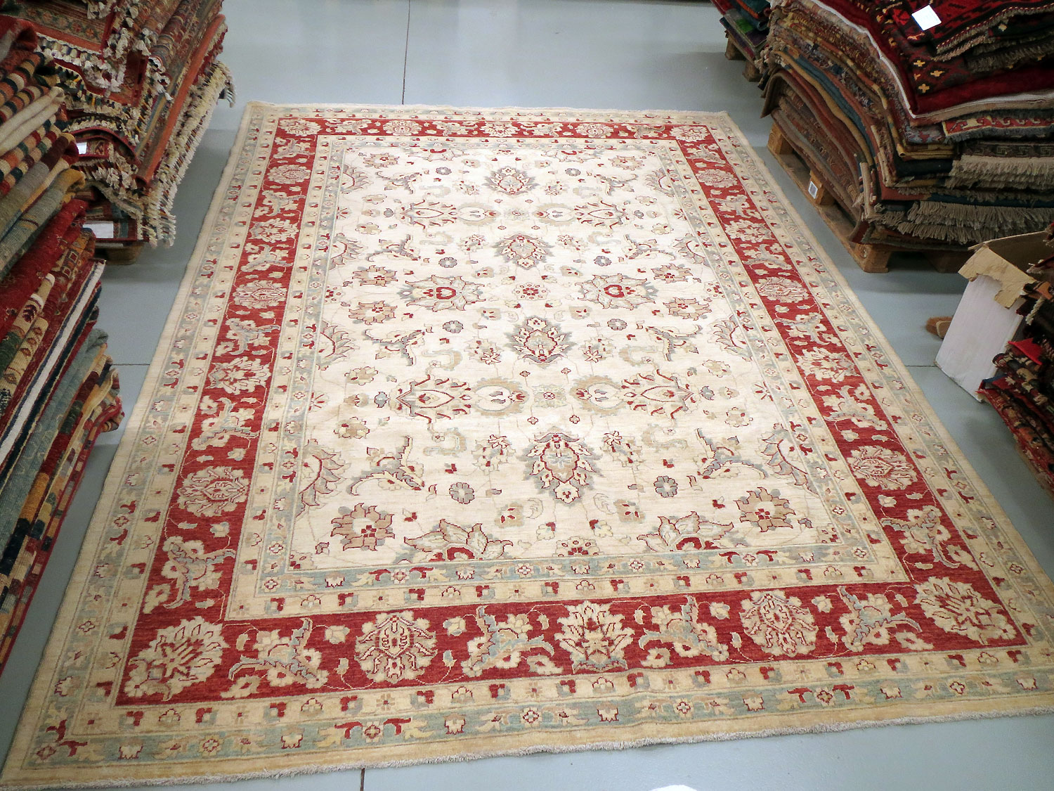 Dimensions : 370 x 280 cm -laine- Pays Afghanistan - Épaisseur : 9 mm - Densité de nouage : 200.000 Nœuds au m² - Surface : 10.36 m² - Poids : 31.08 Kgs - Age : contemporain - Confection : Noué main - Forme : Tapis de salon - Type : Tapis Oriental