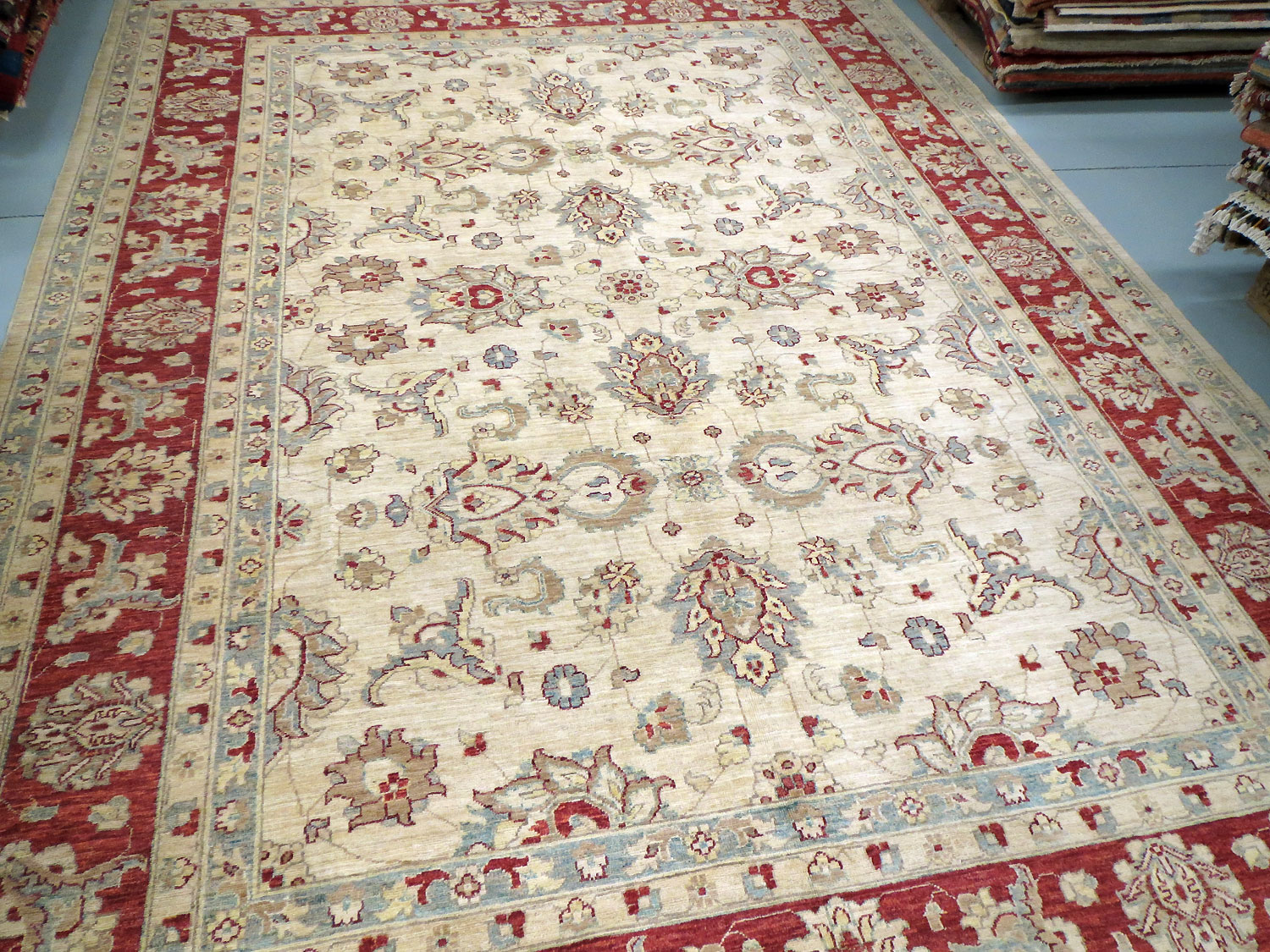 Dimensions : 393 x 300 cm -laine- Pays Afghanistan - Épaisseur : 9 mm - Densité de nouage : 200.000 Nœuds au m² - Surface : 11.79 m² - Poids : 35.37 Kgs - Age : contemporain - Confection : Noué main - Forme : Tapis de salon - Type : Tapis Oriental
