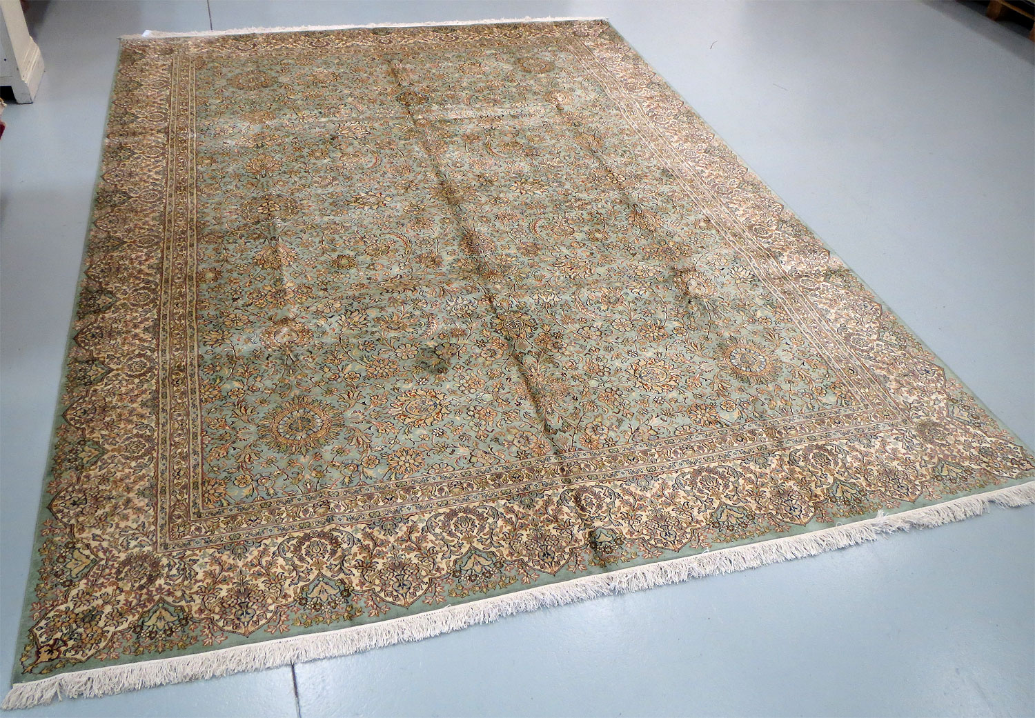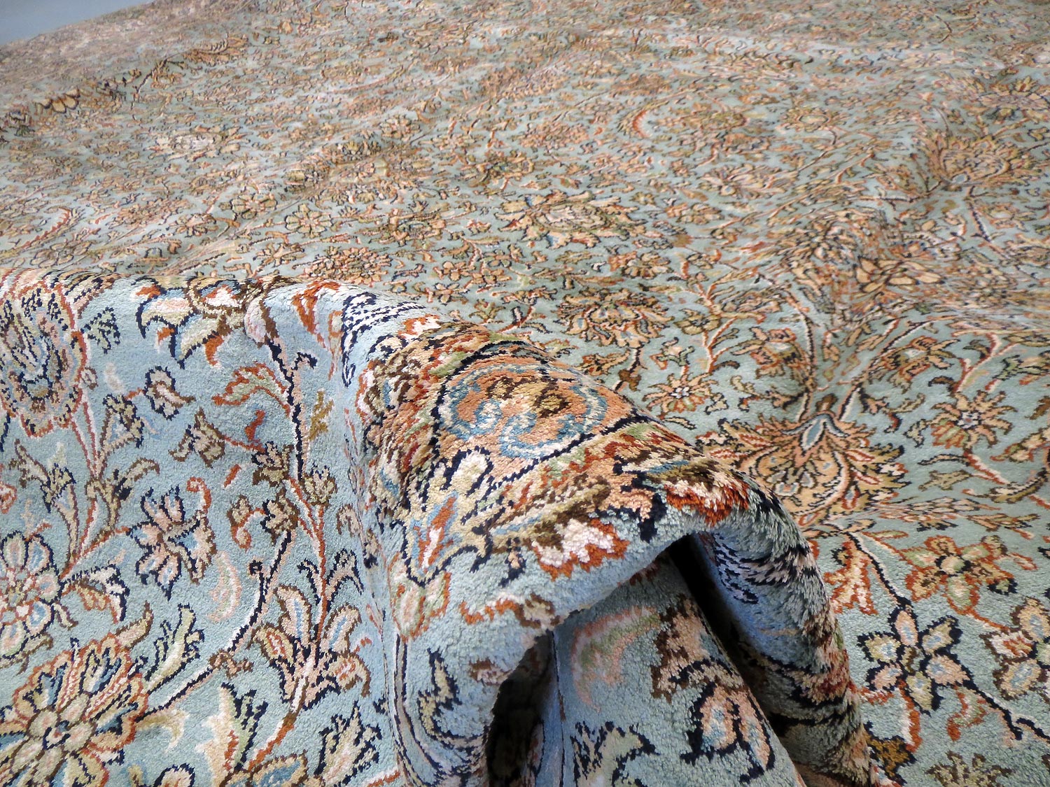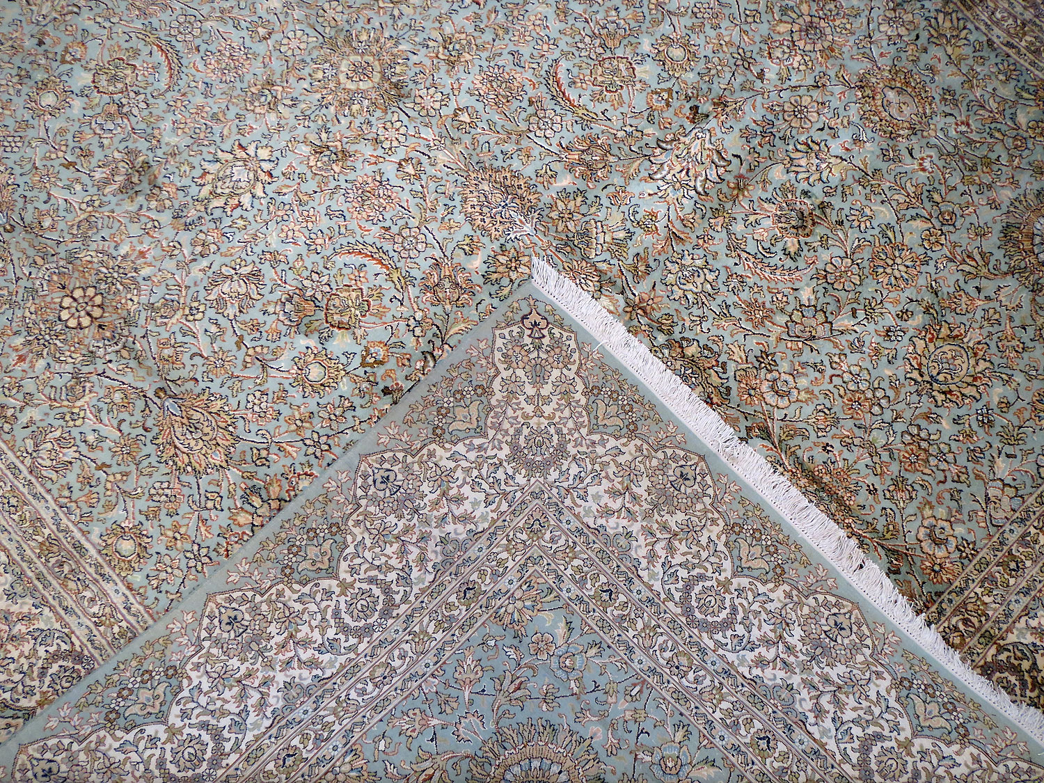Dimensions : 339 x 249 cm -soie art- Pays Inde - Épaisseur : 6 mm - Densité de nouage : 500.000 Nœuds au m² - Surface : 8.44 m² - Poids : 16.88 Kgs - Age : contemporain - Confection : Noué main - Forme : Tapis de salon - Type : Tapis Oriental