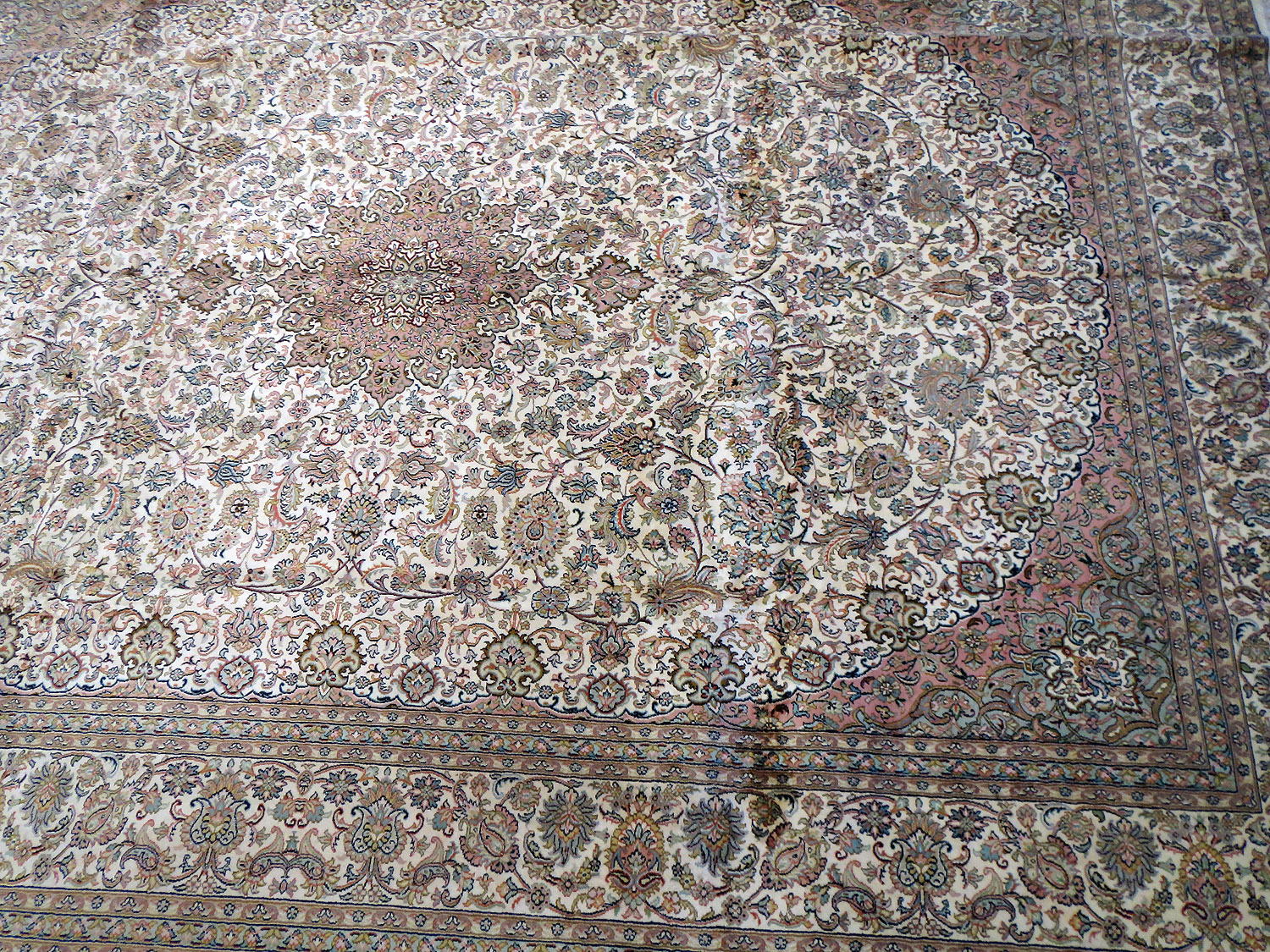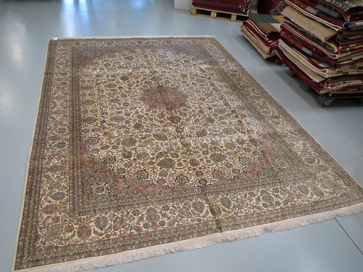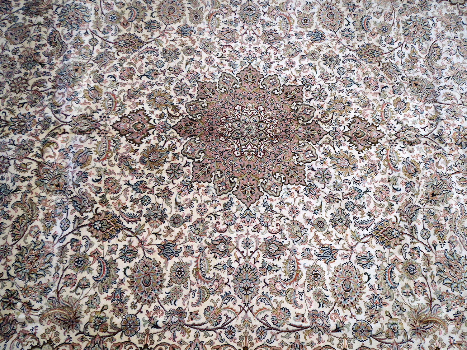 Dimensions : 339 x 250 cm -soie- Pays Inde - Épaisseur : 6 mm - Densité de nouage : 500.000 Nœuds au m² - Surface : 8.48 m² - Poids : 16.95 Kgs - Age : contemporain - Confection : Noué main - Forme : Tapis de salon - Type : Tapis Oriental