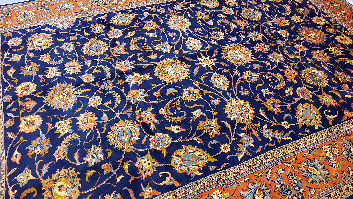 Dimensions : 350 x 250 cm -laine- Pays Iran - Épaisseur : 10 mm - Densité de nouage : 400.000 Nœuds au m² - Surface : 8.75 m² - Poids : 26.25 Kgs - Age : contemporain - Confection : Noué main - Forme : Tapis de salon - Type : Tapis persan