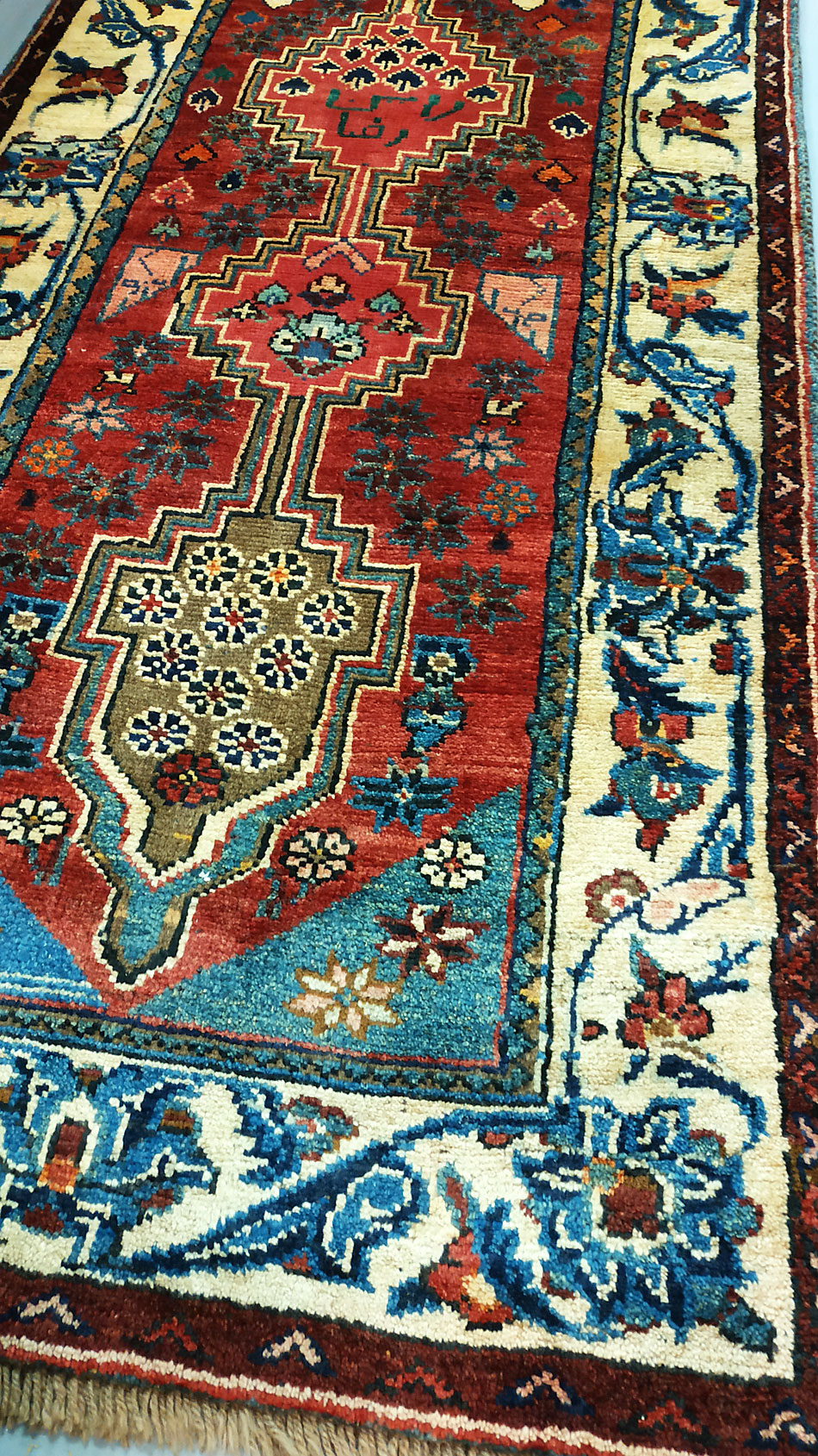 Dimensions : 196 x 74 cm -laine- Pays Iran - Épaisseur : mm - Densité de nouage : Nœuds au m² - Surface : 0 m² - Poids : 0 Kgs - Age : - Confection : - Forme : - Type :