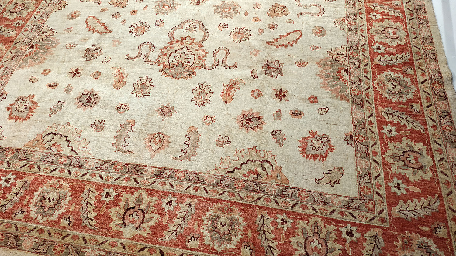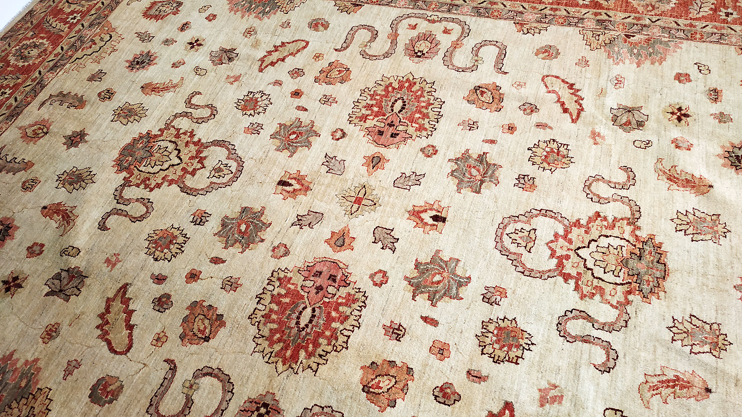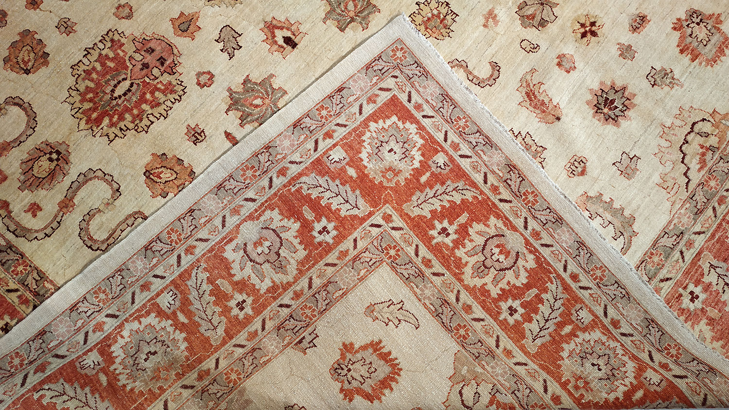 Dimensions : 352 x 269 cm -laine- Pays Afghanistan - Épaisseur : 9 mm - Densité de nouage : 200.000 Nœuds au m² - Surface : 9.47 m² - Poids : 28.41 Kgs - Age : contemporain - Confection : Noué main - Forme : Tapis de salon - Type : Tapis Oriental