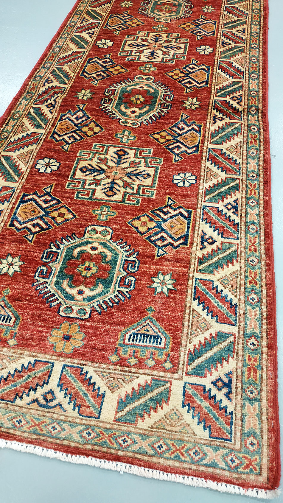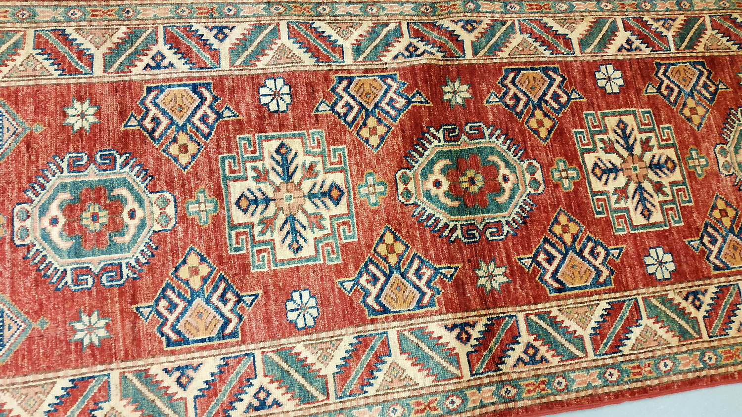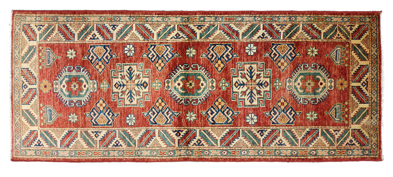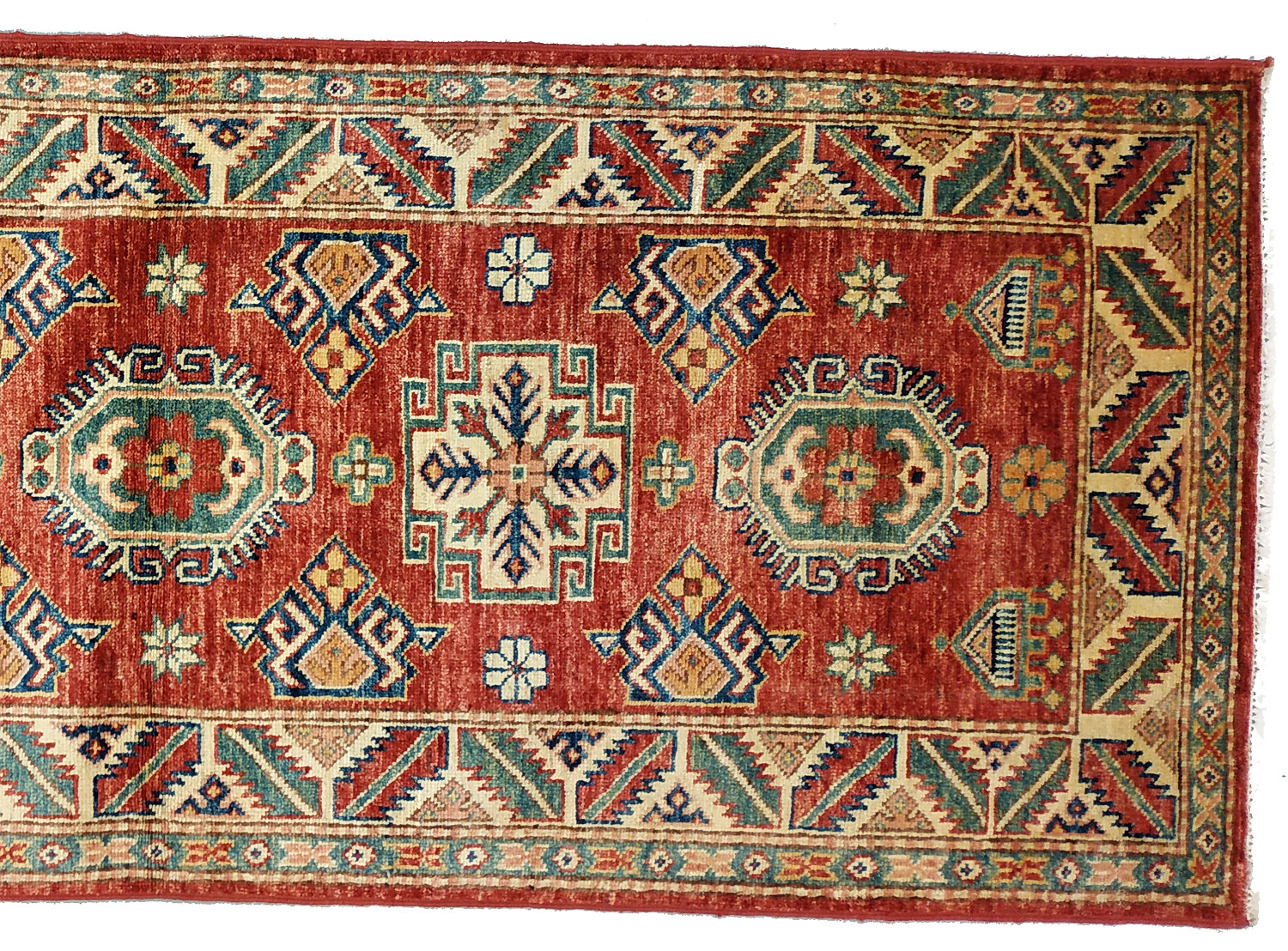 Dimensions : 191 x 77 cm -laine- Pays Afghanistan - Épaisseur : 8 mm - Densité de nouage : 300.000 Nœuds au m² - Surface : 1.47 m² - Poids : 4.41 Kgs - Age : contemporain - Confection : Noué main - Forme : Tapis de couloirs - Type : Tapis Oriental