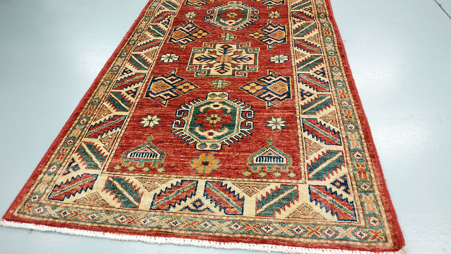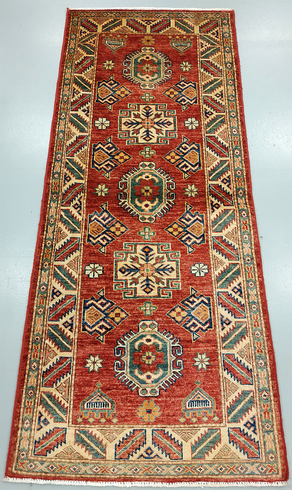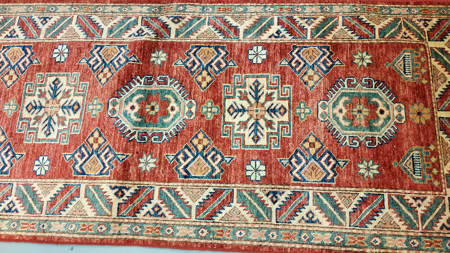 Dimensions : 191 x 77 cm -laine- Pays Afghanistan - Épaisseur : 8 mm - Densité de nouage : 300.000 Nœuds au m² - Surface : 1.47 m² - Poids : 4.41 Kgs - Age : contemporain - Confection : Noué main - Forme : Tapis de couloirs - Type : Tapis Oriental