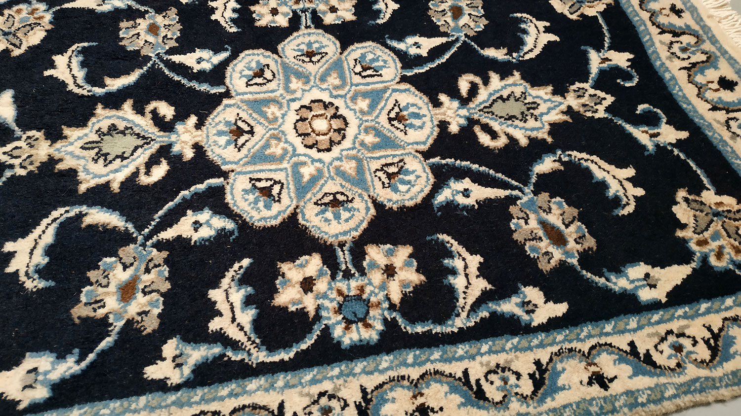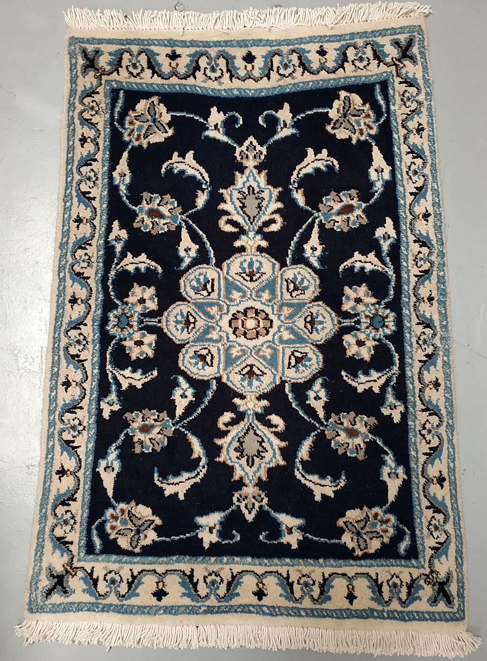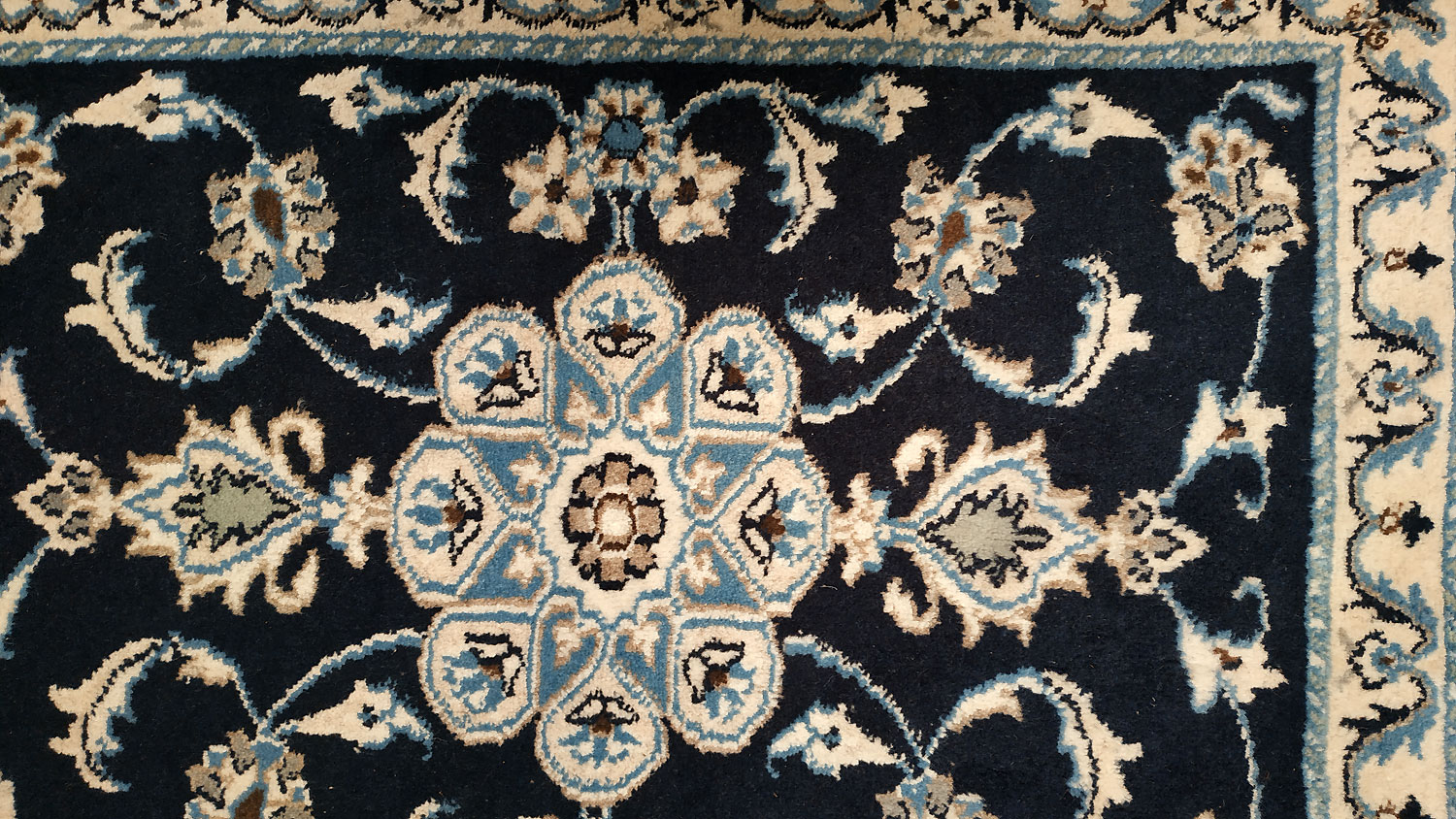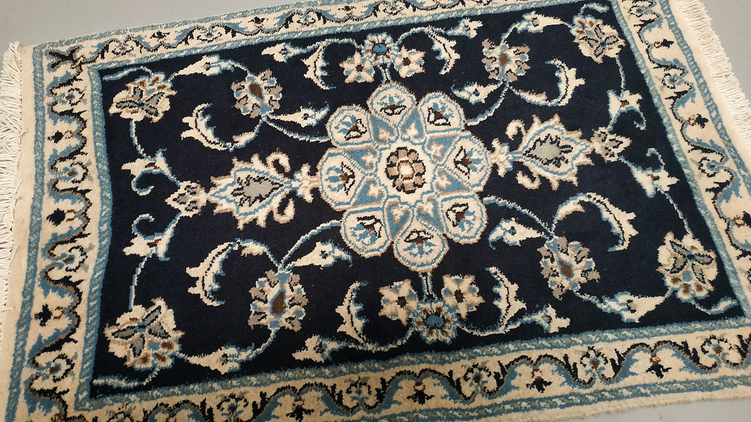 Dimensions : 60 x 57 cm -laine et soie- Pays Iran - Épaisseur : 9 mm - Densité de nouage : 360.000 Nœuds au m² - Surface : 0.34 m² - Poids : 0.86 Kgs - Age : contemporain - Confection : Noué main - Forme : Tapis de chambre - Type : Tapis persan