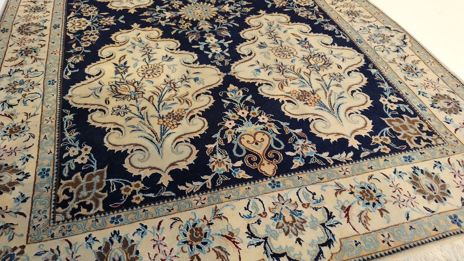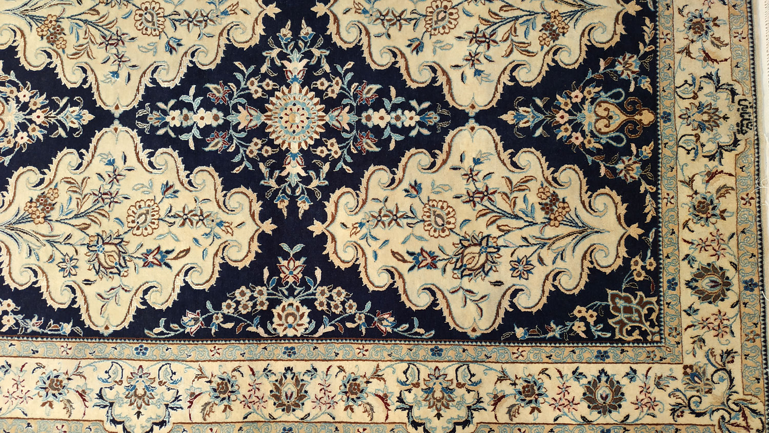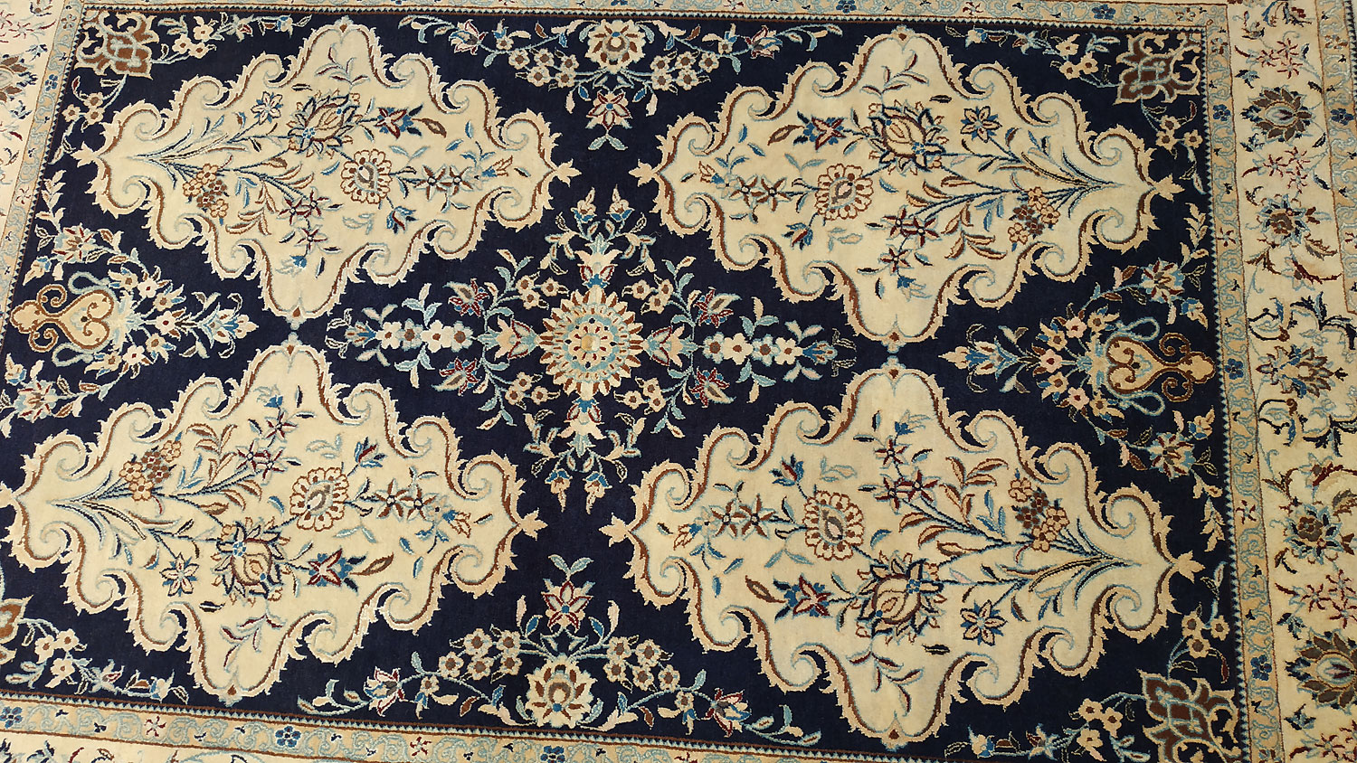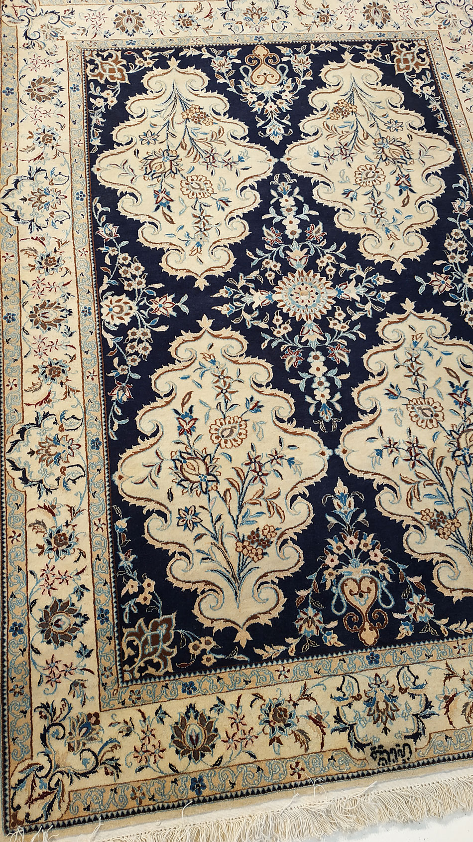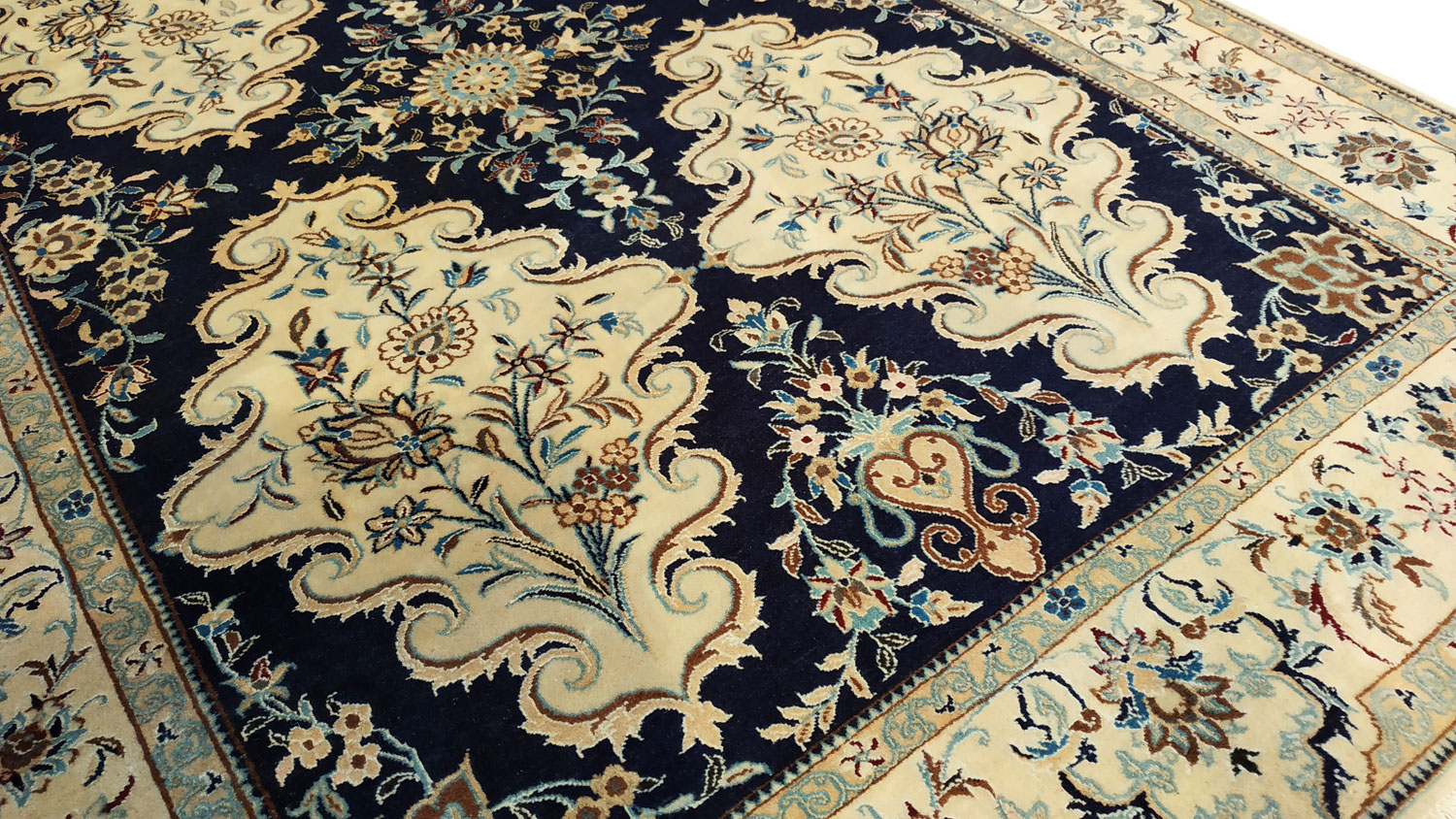 Dimensions : 163 x 118 cm -laine et soie- Pays Iran - Épaisseur : 8 mm - Densité de nouage : 800.000 Nœuds au m² - Surface : 1.92 m² - Poids : 4.81 Kgs - Age : contemporain - Confection : Noué main - Forme : Tapis de chambre - Type : Tapis persan
