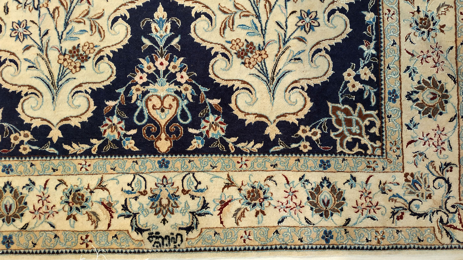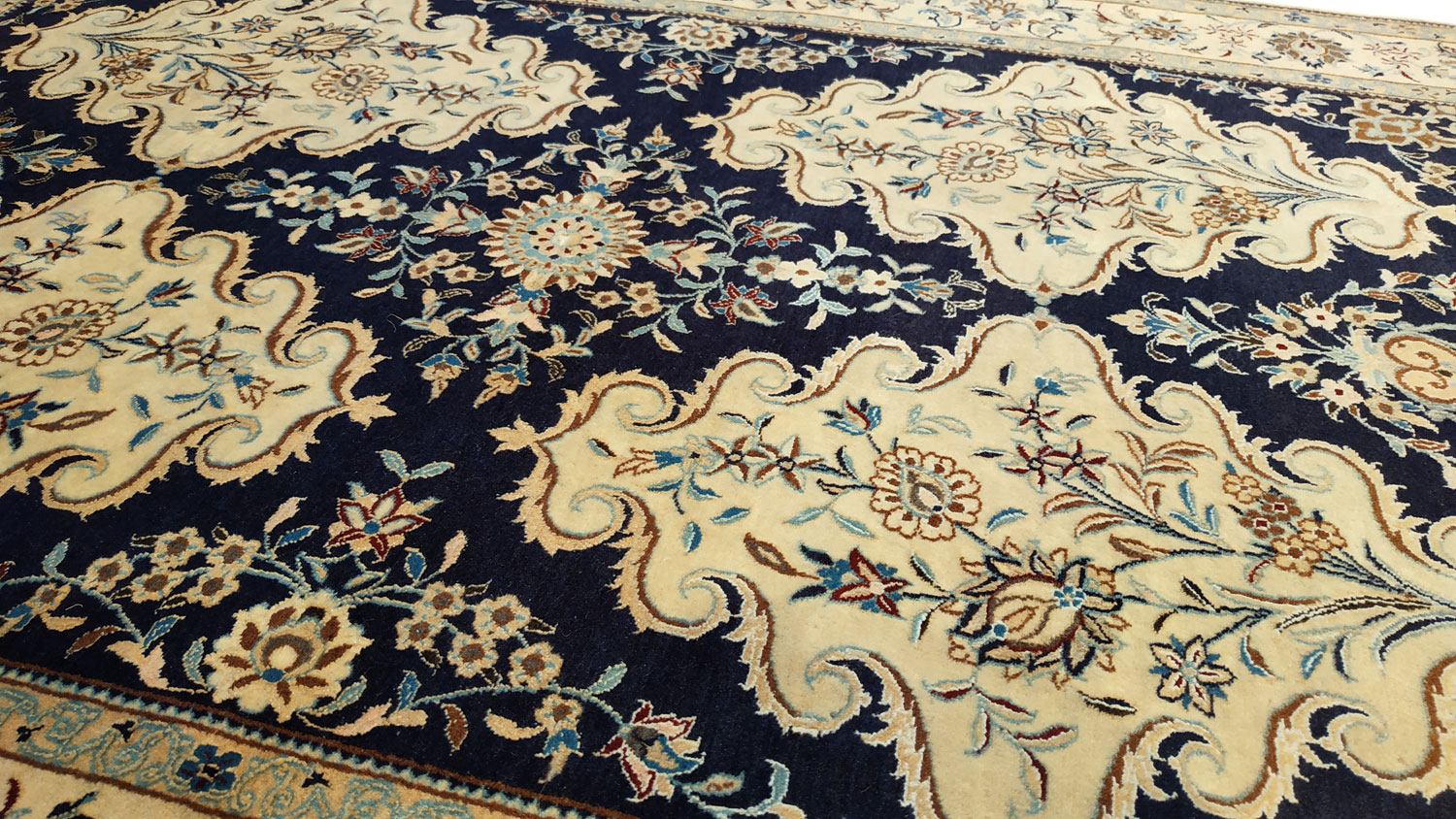 Dimensions : 134 x 87 cm -laine et soie- Pays Iran - Épaisseur : 8 mm - Densité de nouage : 800.000 Nœuds au m² - Surface : 1.17 m² - Poids : 2.91 Kgs - Age : contemporain - Confection : Noué main - Forme : Tapis de chambre - Type : Tapis persan