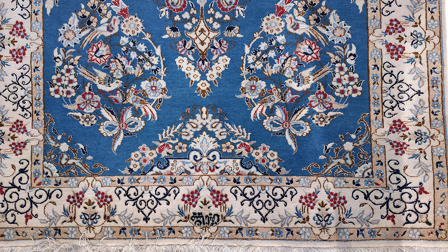 Dimensions : 134 x 87 cm -laine et soie- Pays Iran - Épaisseur : 8 mm - Densité de nouage : 800.000 Nœuds au m² - Surface : 1.17 m² - Poids : 2.91 Kgs - Age : contemporain - Confection : Noué main - Forme : Tapis de chambre - Type : Tapis persan
