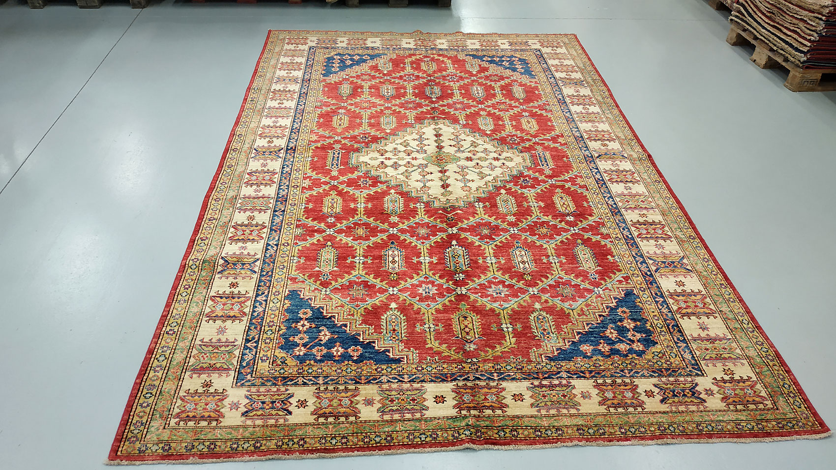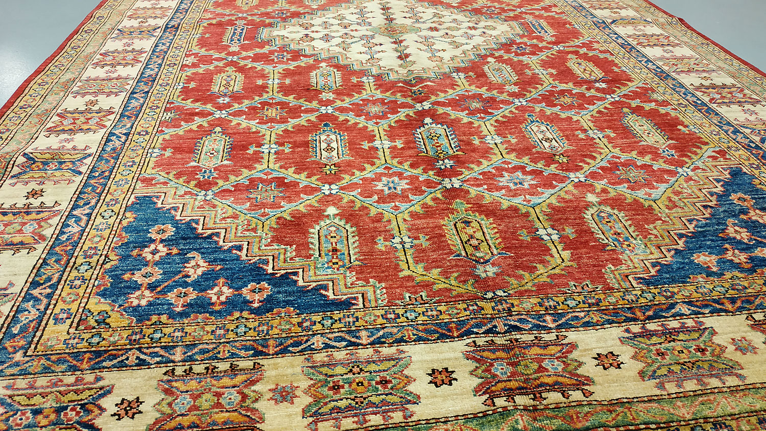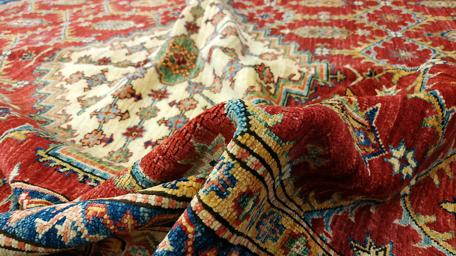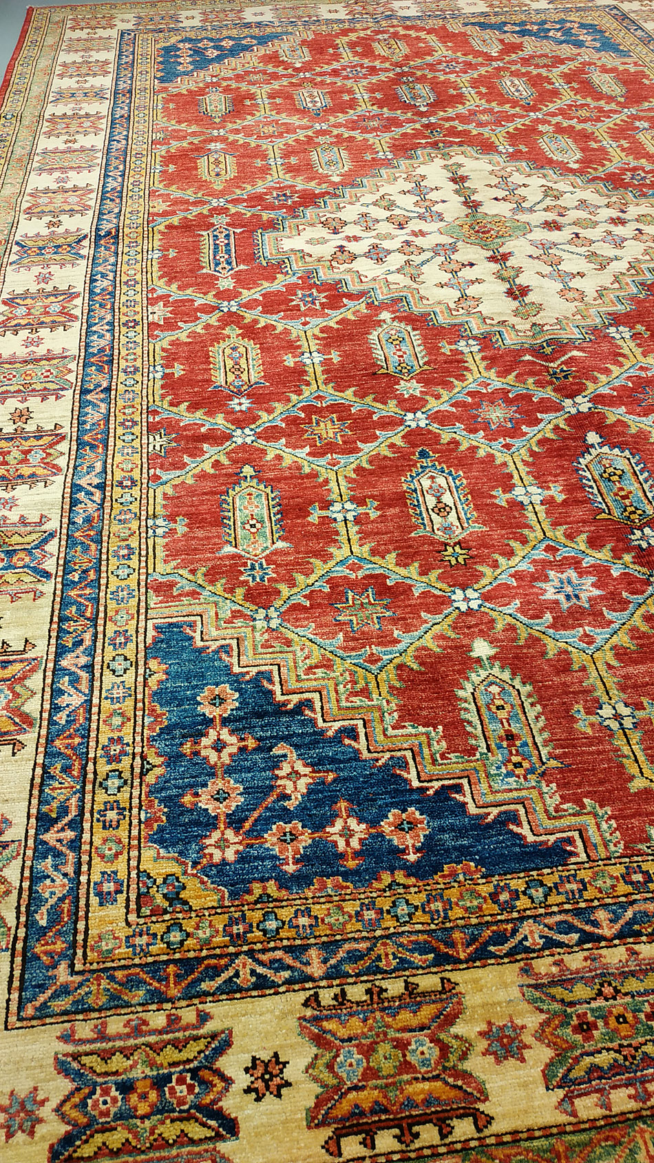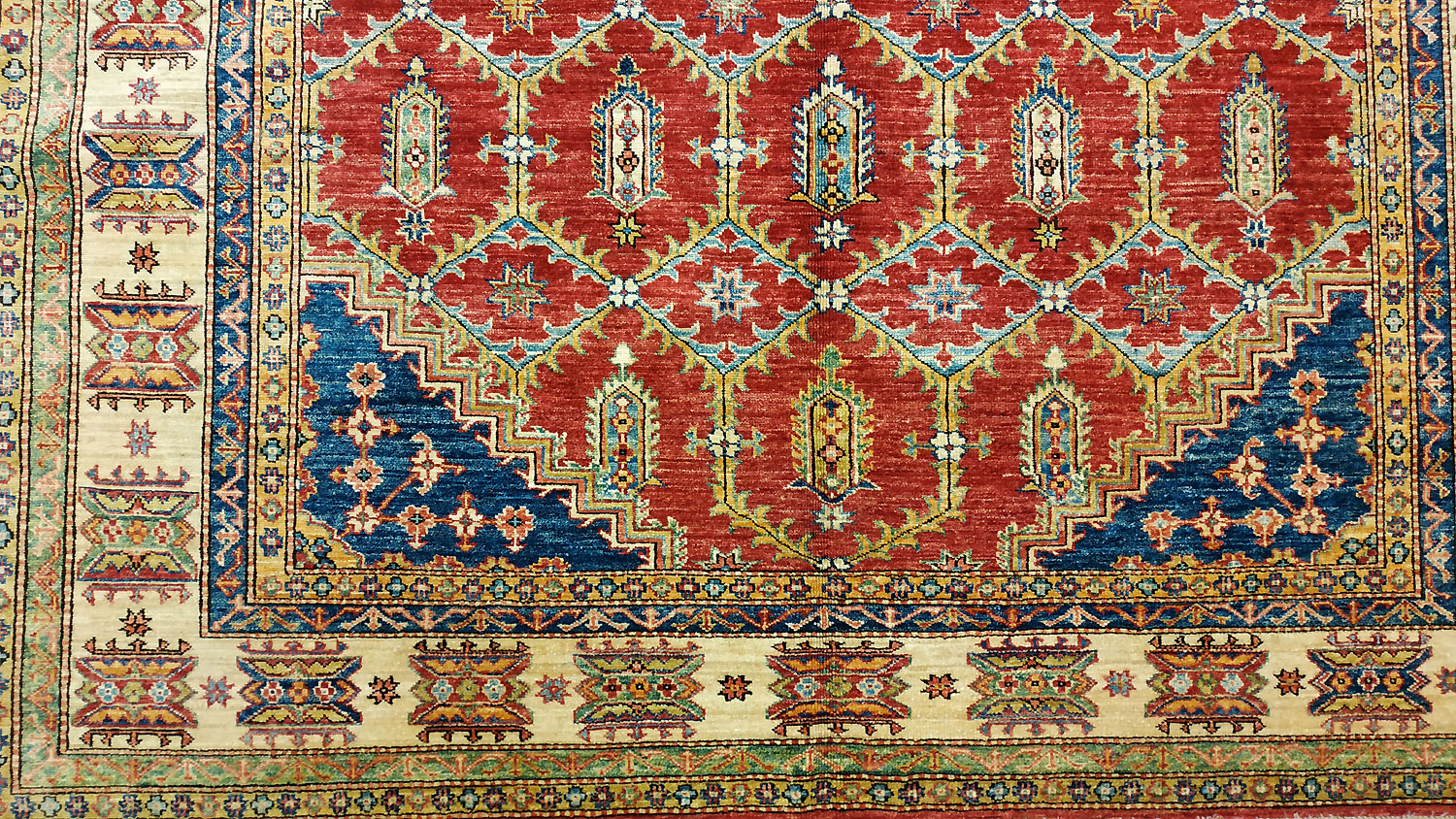 Dimensions : 292 x 196 cm -laine- Pays Afghanistan - Épaisseur : 8 mm - Densité de nouage : 300.000 Nœuds au m² - Surface : 5.72 m² - Poids : 17.17 Kgs - Age : contemporain - Confection : Noué main - Forme : Tapis de salon - Type : Tapis Oriental